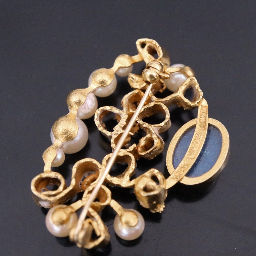 Jørgen Peter Vang. Broche i 14k guld med perler og labradorit.
