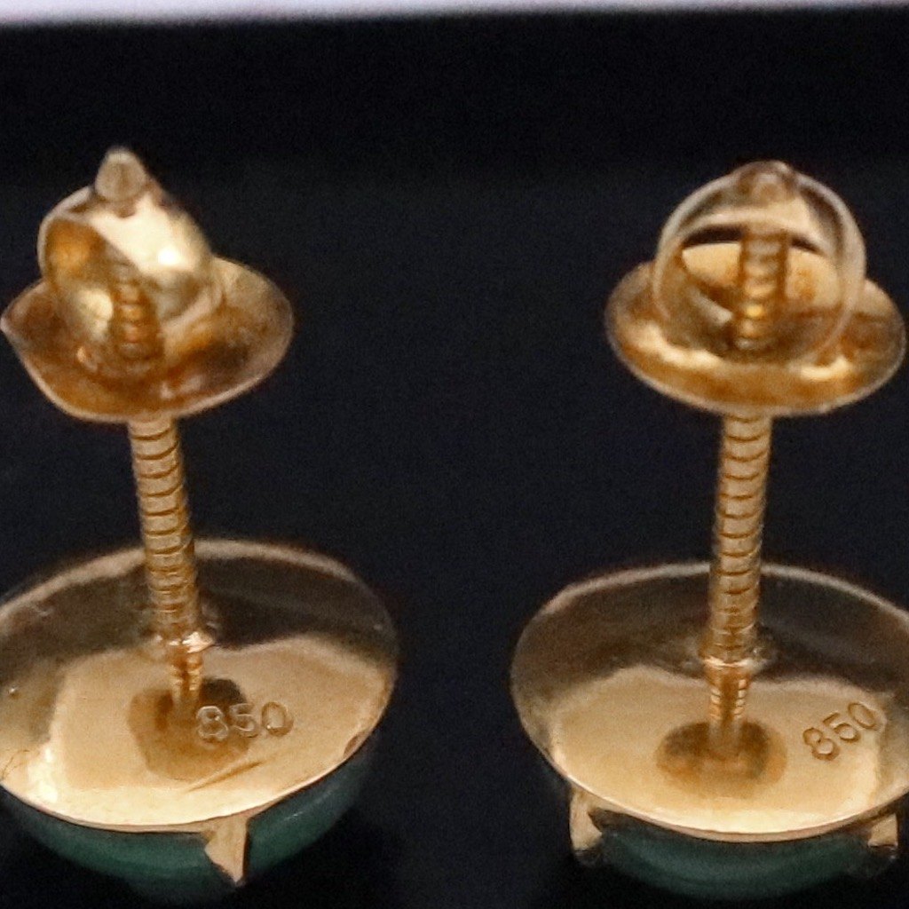 Ørestikker i 20k guld med jade.