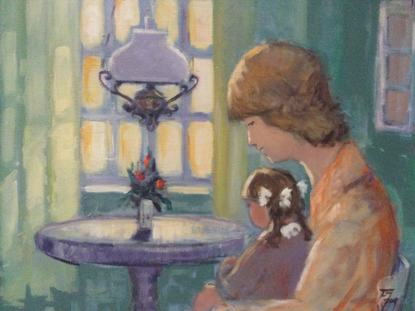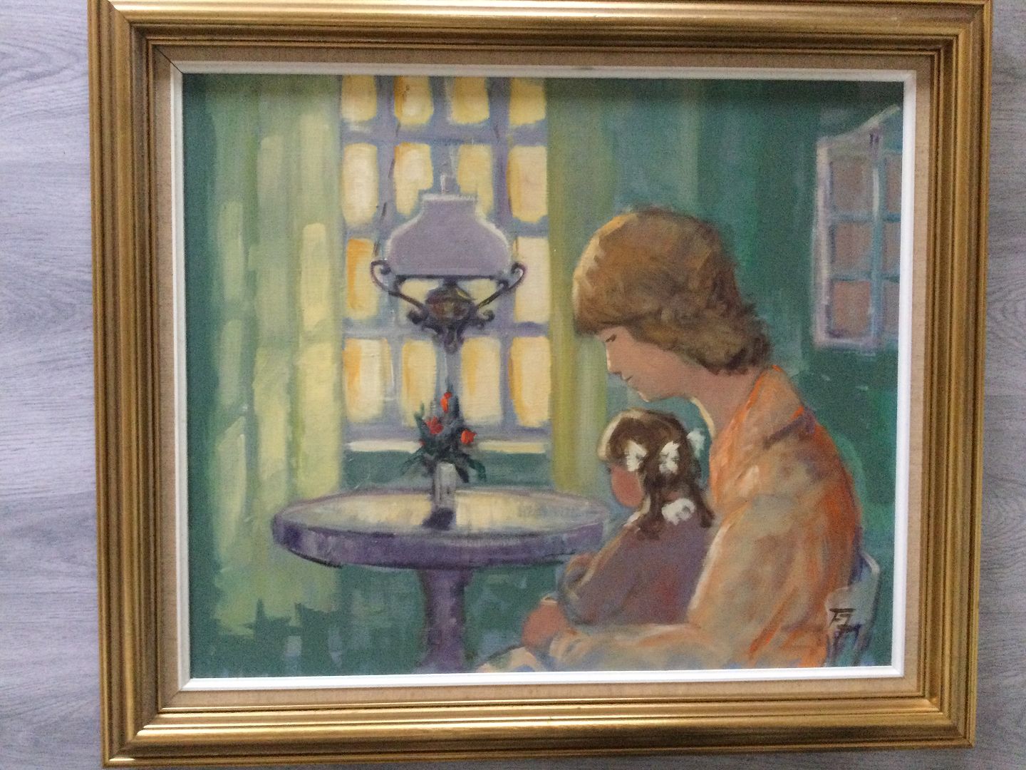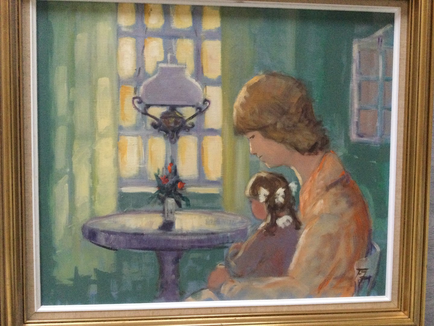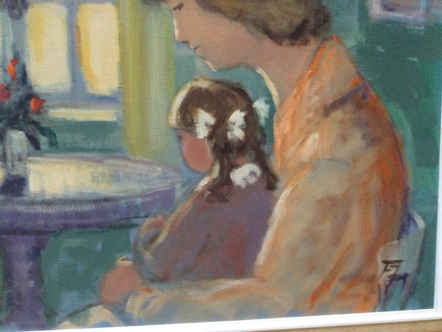 Maleri Finn Johansen - Mor og barn ved vindue.