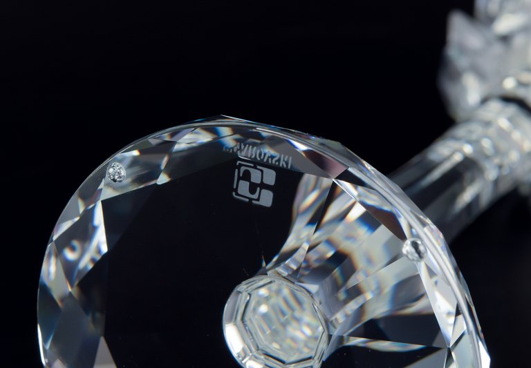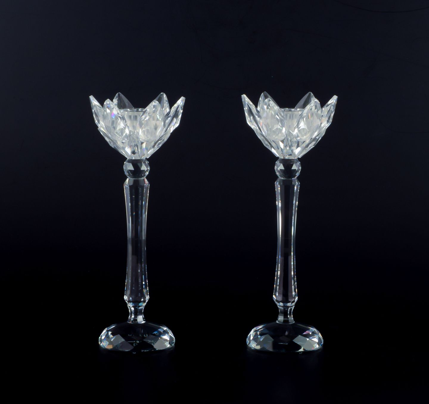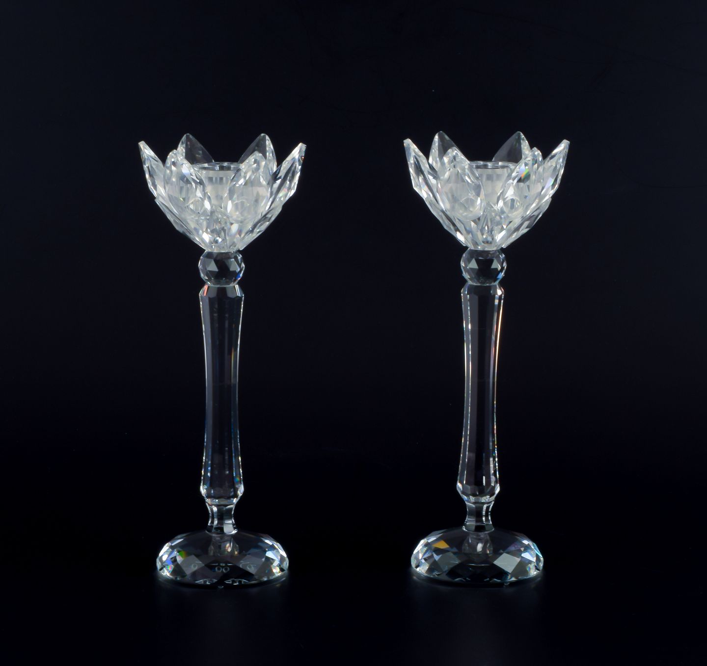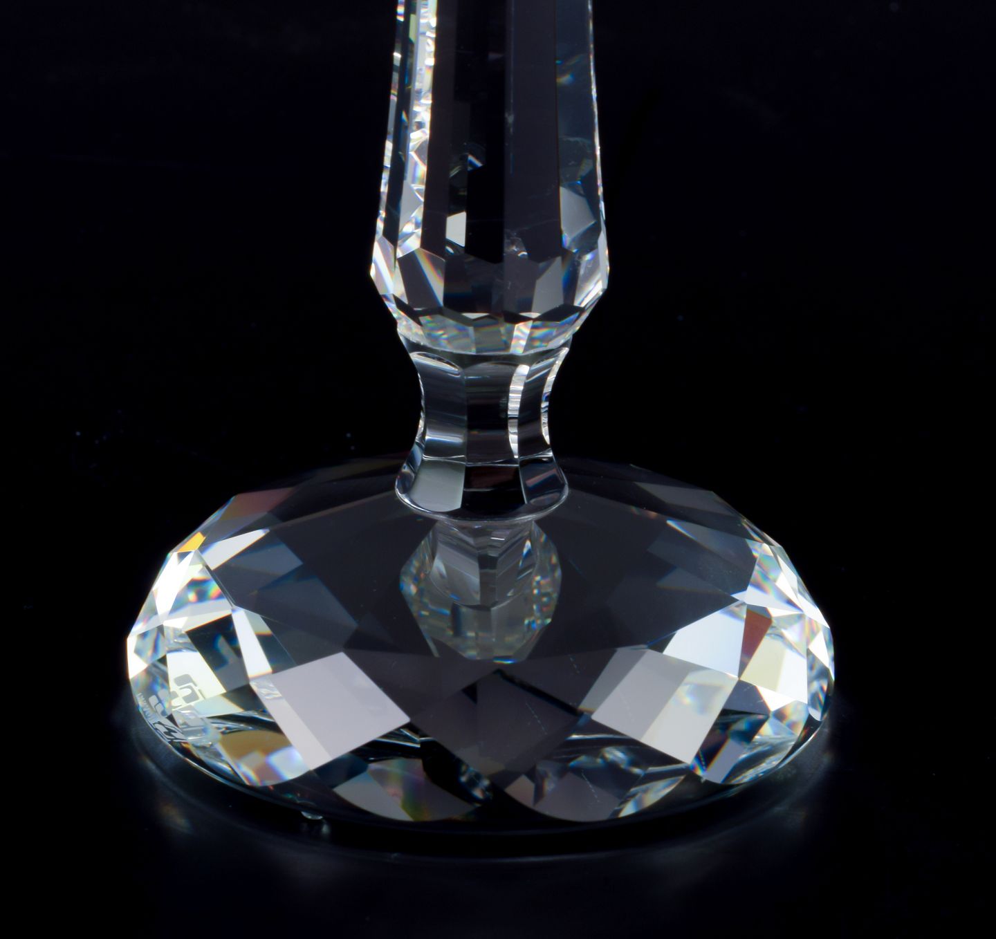 Swarovski, Østrig. Et par lysestager i facetslebet krystal.