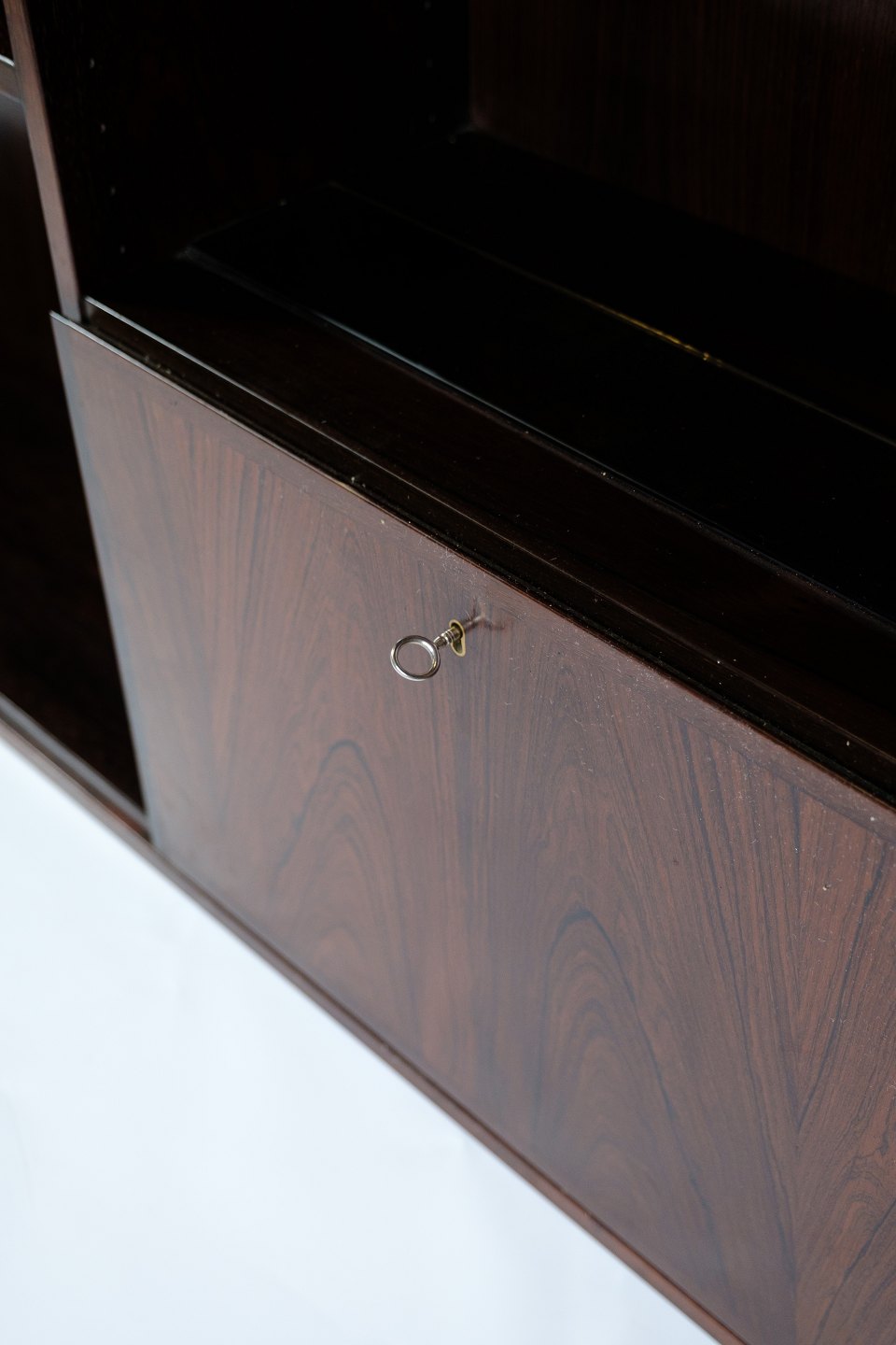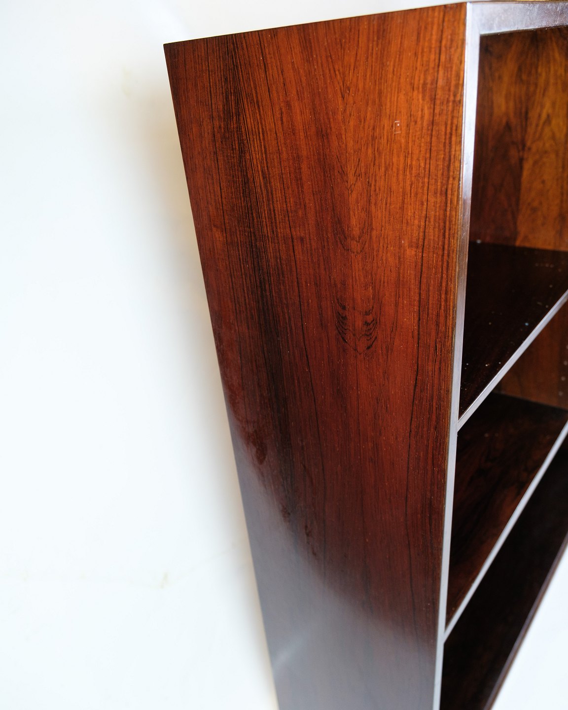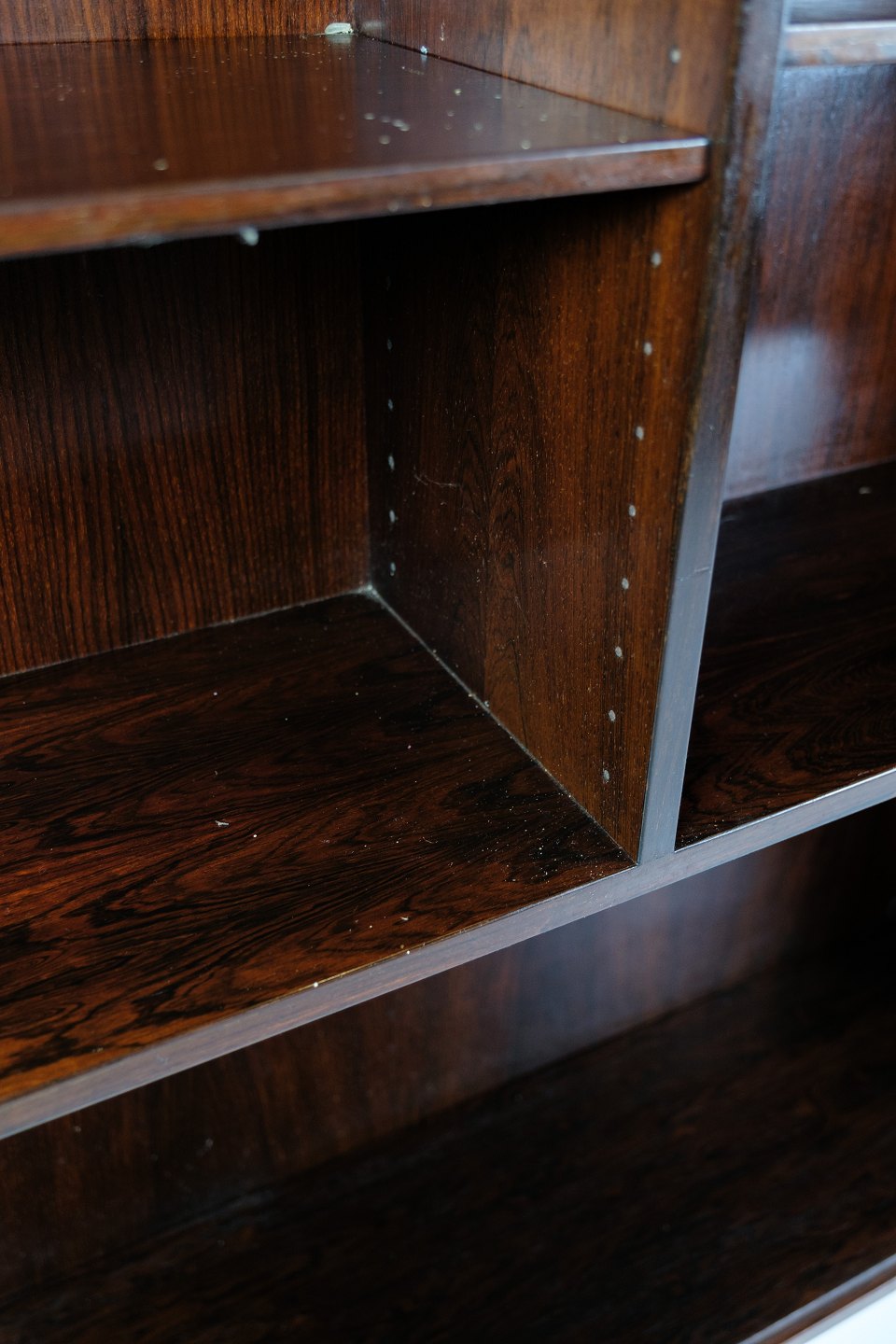 Denne reol i palisander træ, kendt som model 35, er et strålende eksempel på den tidløse elegance inden for dansk møbeldesign. Med sit rige træmateriale og omhyggelige konstruktion er denne reol ikke kun et praktisk møbel, men også et kunstværk i sig selv.