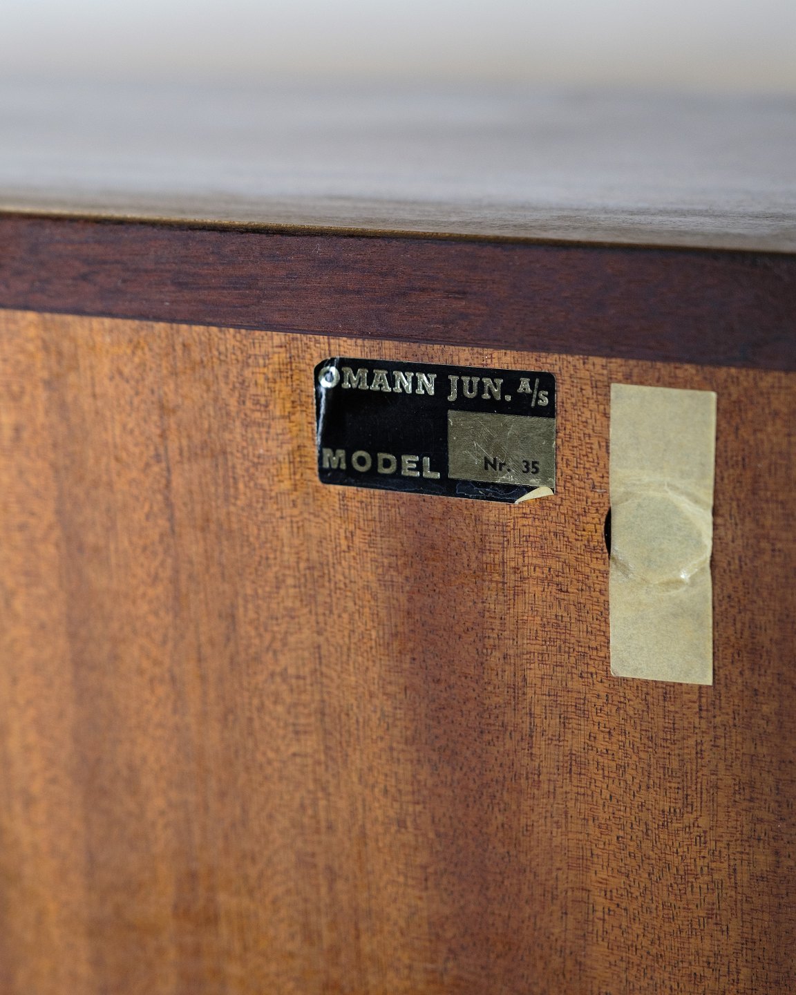Omann Junior Møbelfabrik, grundlagt af Omann-familien, har en lang historie med møbelproduktion og er kendt for deres ekspertise inden for håndværk og tidløse design. Dette møbel, fremstillet i 1960'erne, er et symbol på den danske designtradition og vil være et imponerende tilføjelse til enhver boligindretning eller kontormiljø.