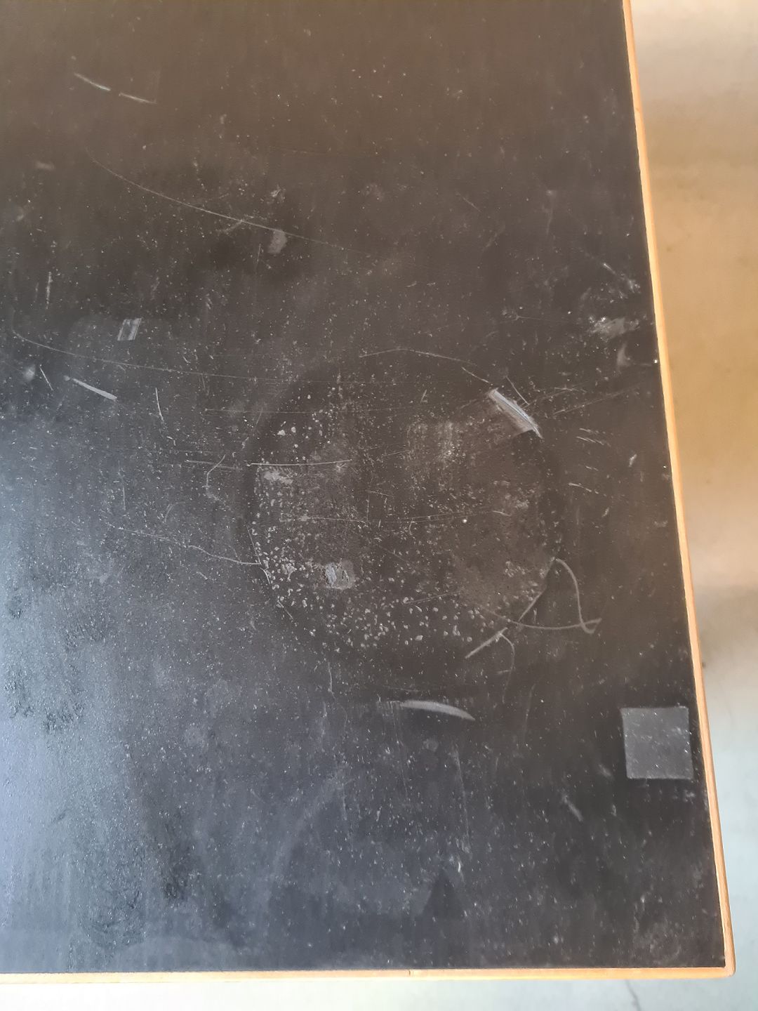Bordpladen har brugsspor.