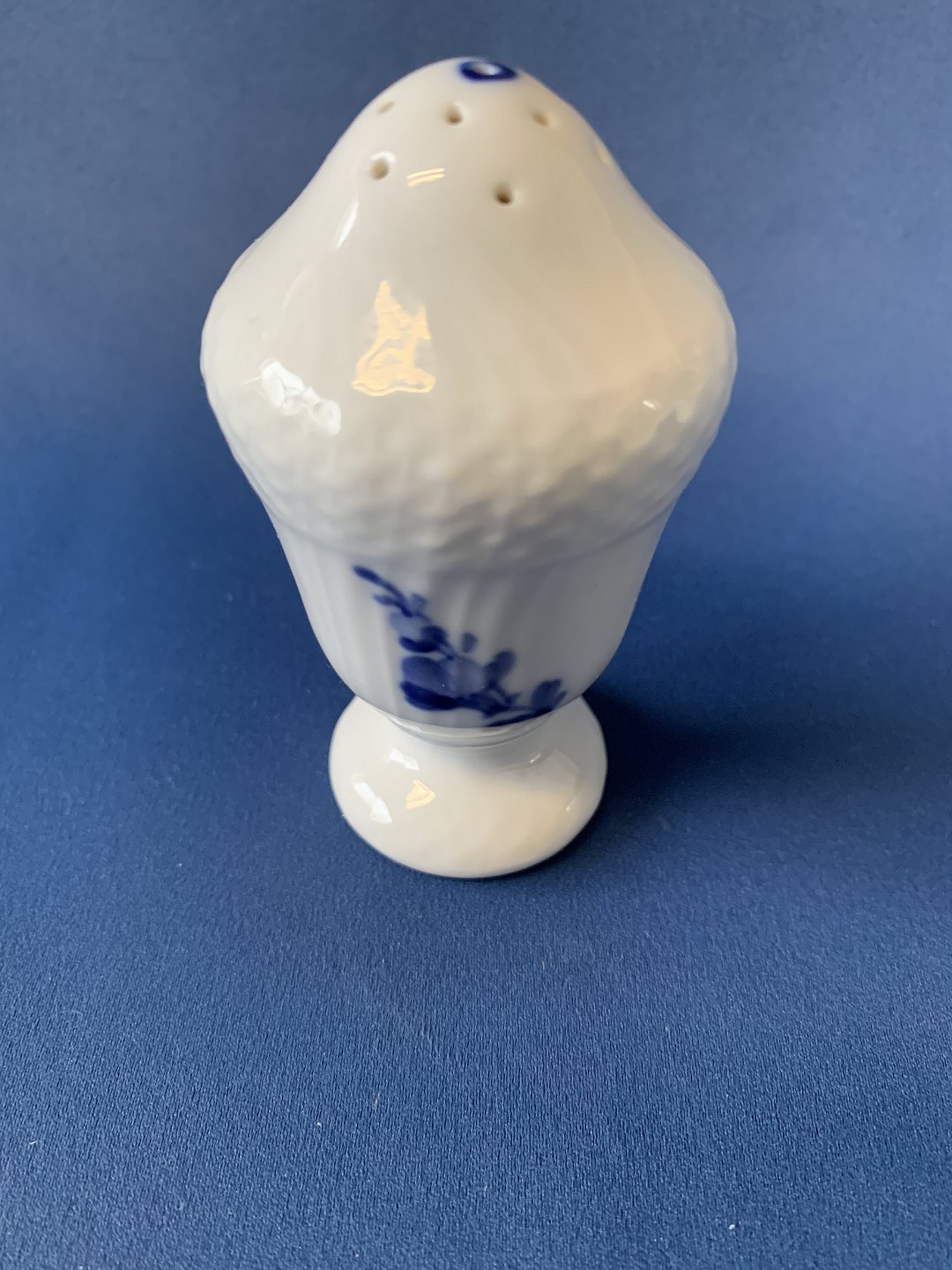 Royal Copenhagen Blå Blomst Svejfet, saltbøsse uden "S" bemalet i toppen.