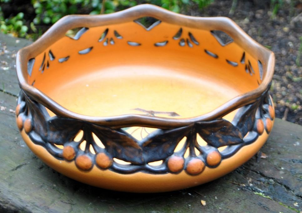 P. Ipsens Enke frugtfad med brudt kirsebærkant, no. 716, 1909. København, Danmark. Keramik. Stemplet. Design: Karen Hagen. 24 x 10 cm. Var i katalogerne 1909 - 1951