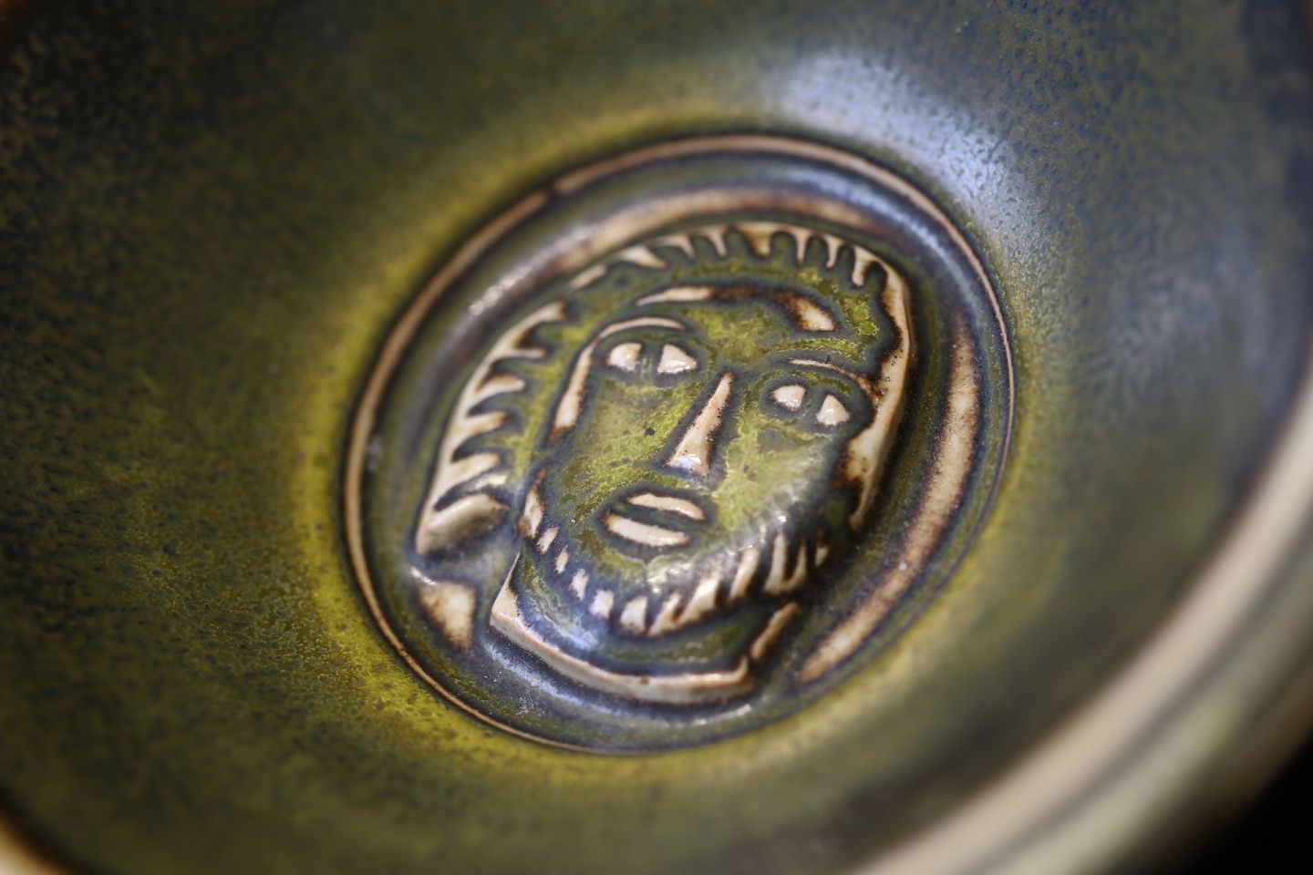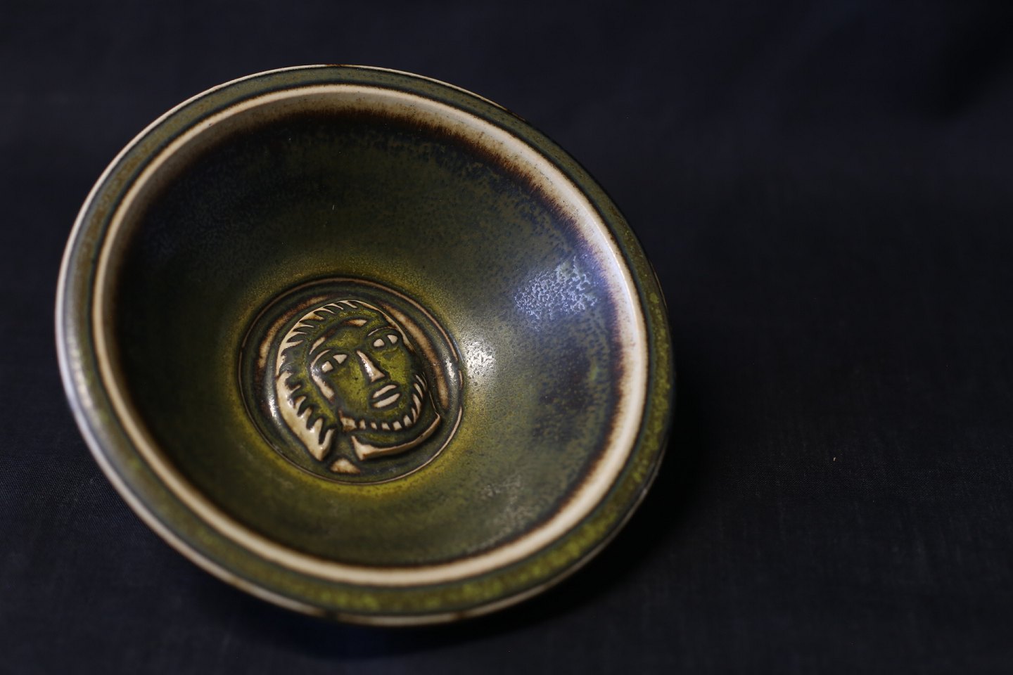 Jais skål med motiv i bunden og flot olivengrøn farve.