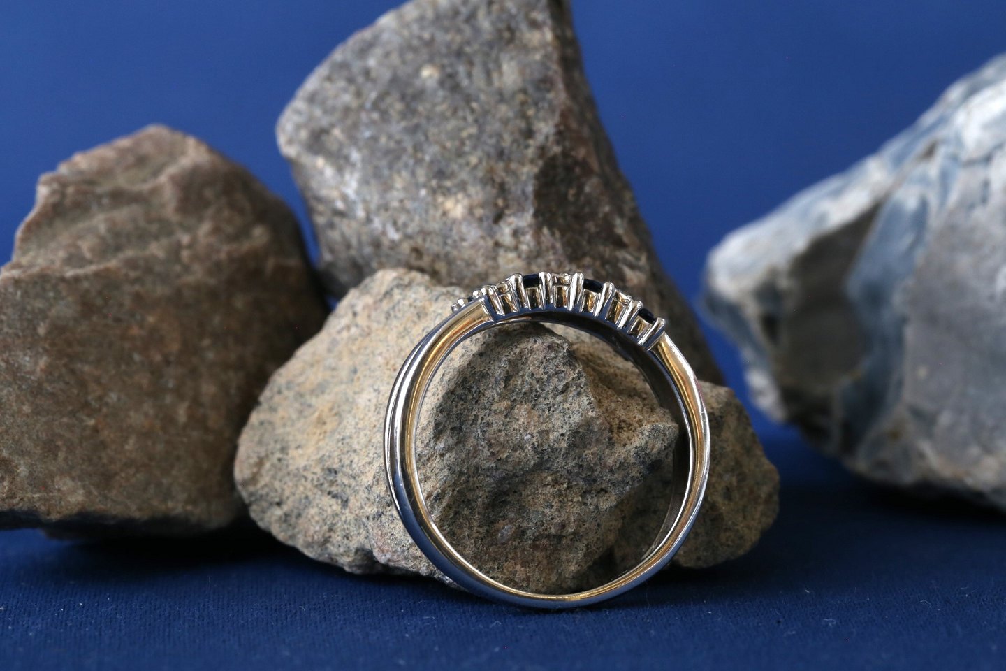 Guldring i 9 karat hvidguld med blå safirer, Størrelse. 58