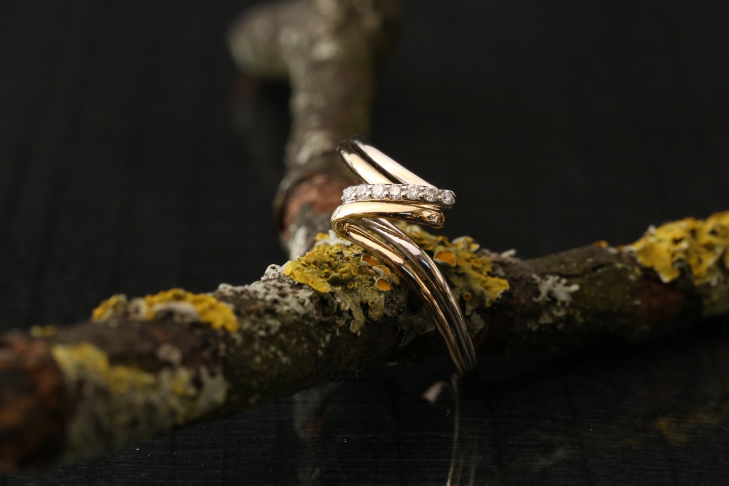 Damering udført i 14 karat rød- og hvidguld med enestående flot struktur. Ringens bløde linjer, kombineret med de indlagte diamanter, giver ringen et unikt udseende, der både er tidløst men også meget elegant. Brug ringen til hverdag eller fest, denne ring kan nemlig begge dele.
