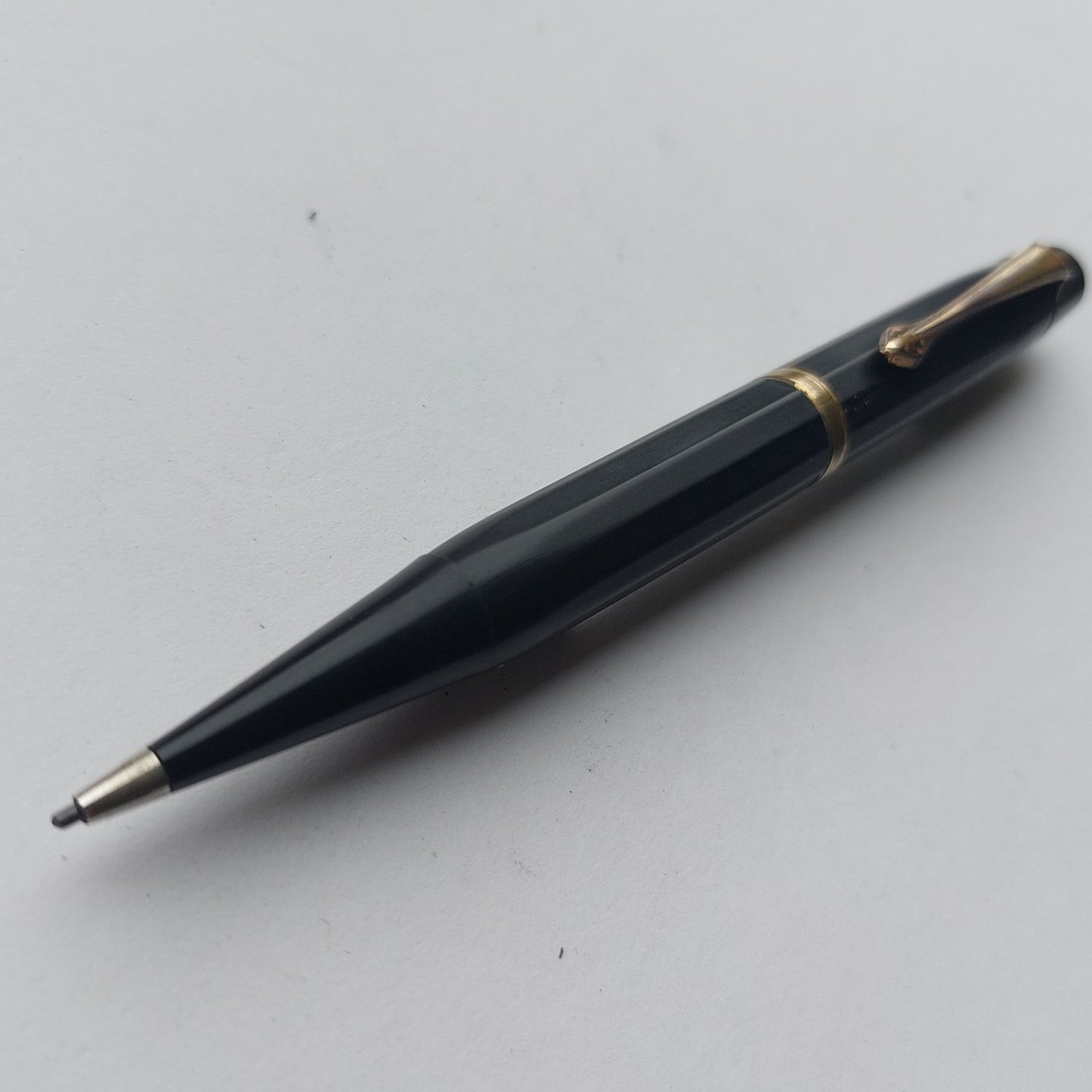 12-kantet Montblanc nr. 35 skrueblyant fra ca. 1940. Fremstår I god stand uden skader eller reparationer. Originalt guld i tekst og stjerne. Meget fin og skriveklar stand. L. 12 cm