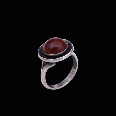 N.E. From. Ring i sterlingsølv med rav.