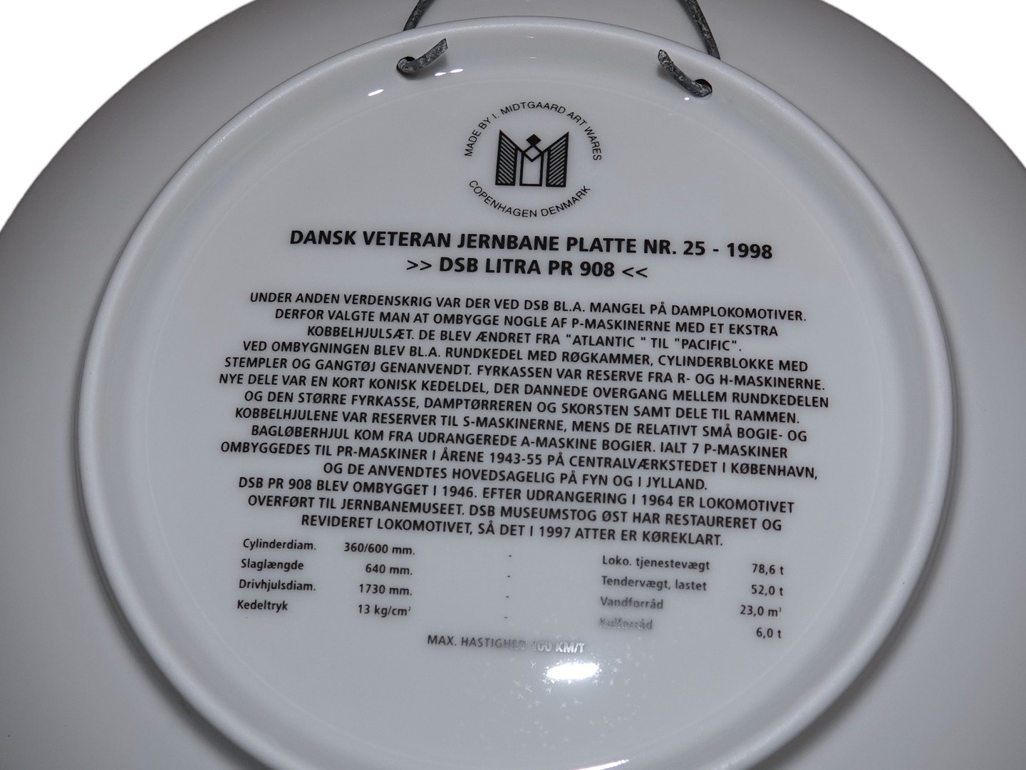 Midtgaard Art Wares togplatte, Dansk Veteranplatte No. 25 med DSB tog. Starten af serien blev lavet hos Bing & Grøndahl.