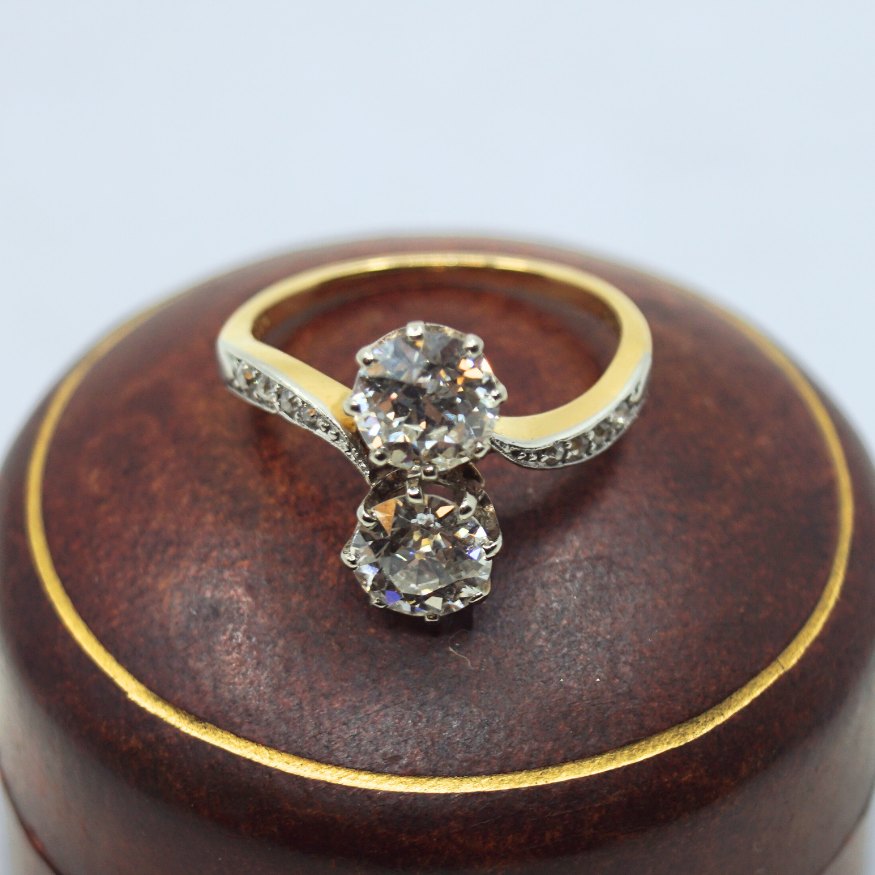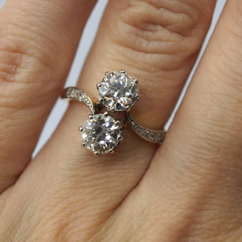 Diamantring i 18 kt. guld og hvidguld med to store brillanter, i alt ca. 1,83 ct. Farve: Top Crystal (I) Klarhed: VS - SI. Ring str. 50.