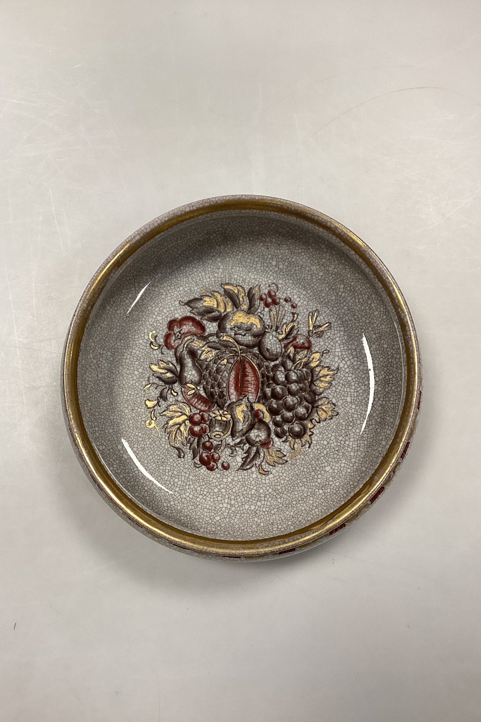 Dahl Jensen Craquelé Skål No. 108/162. Dekoration i siena rød, hvid og guld. Meget slid på guldkanten. Unika eksemplar malet af Arthur Boesen.