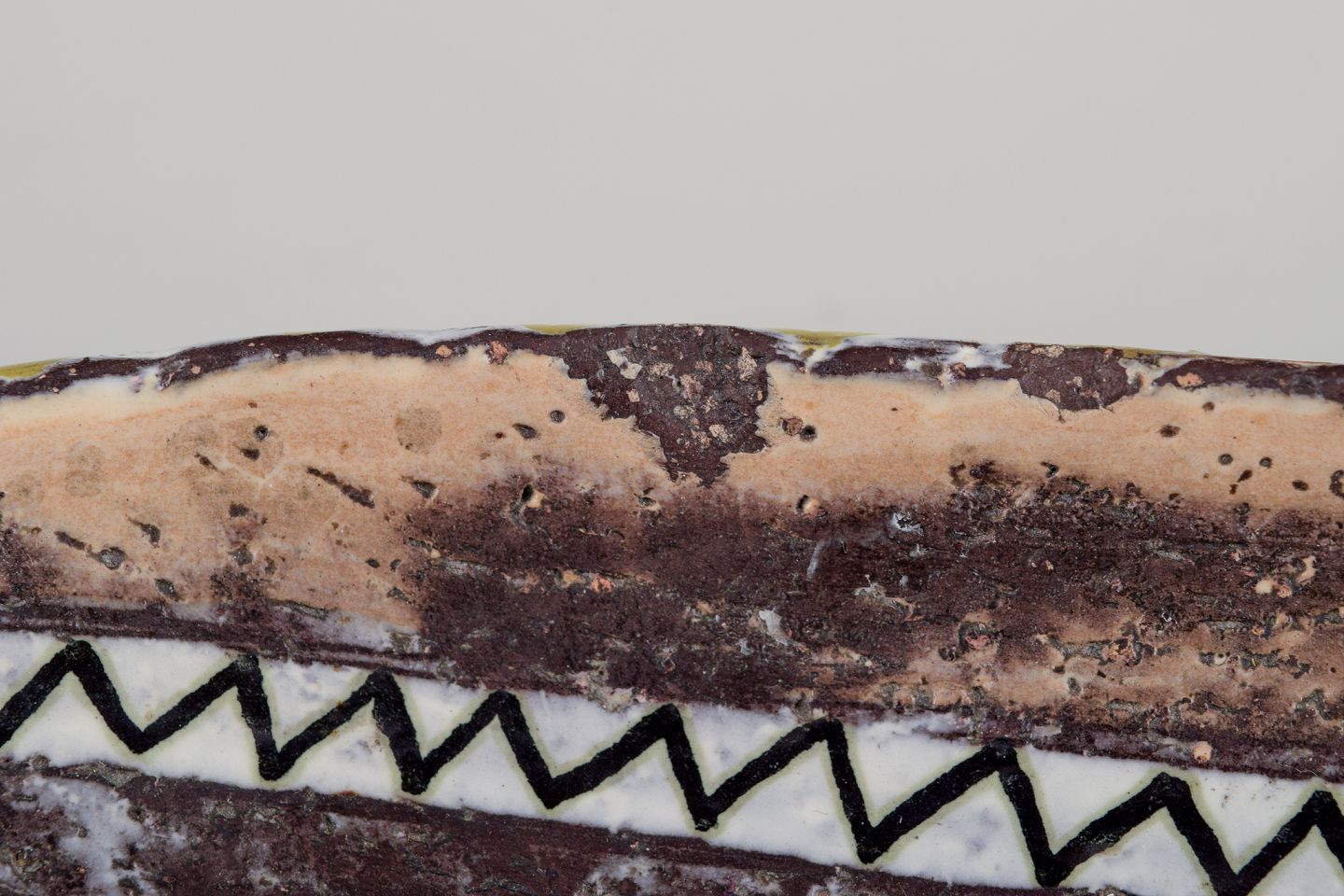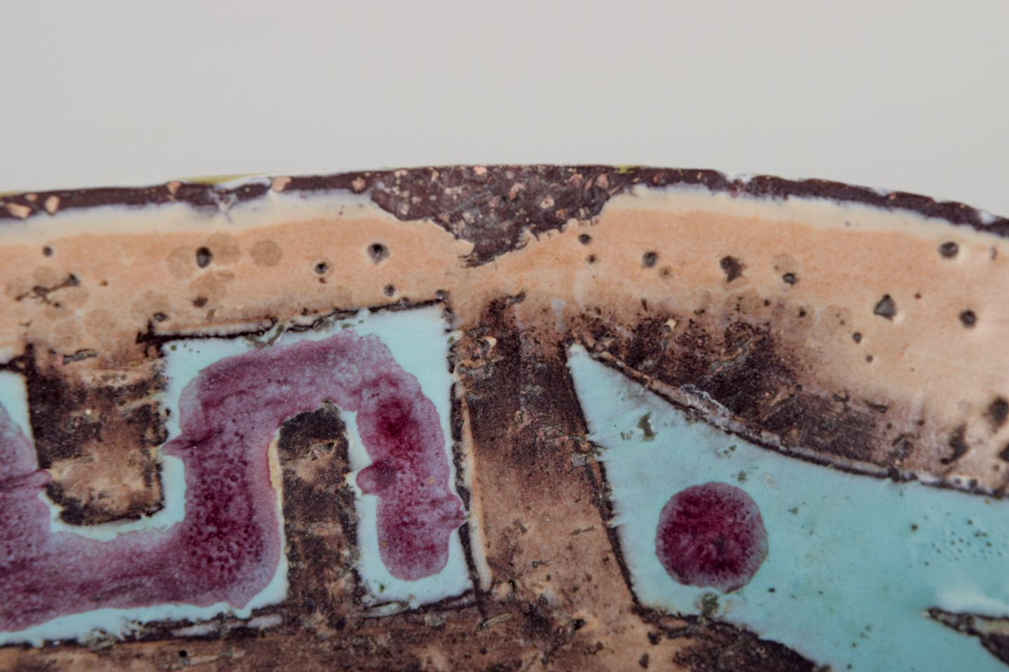 Polychrome glaze. Featuring a woman's face and birds motif.