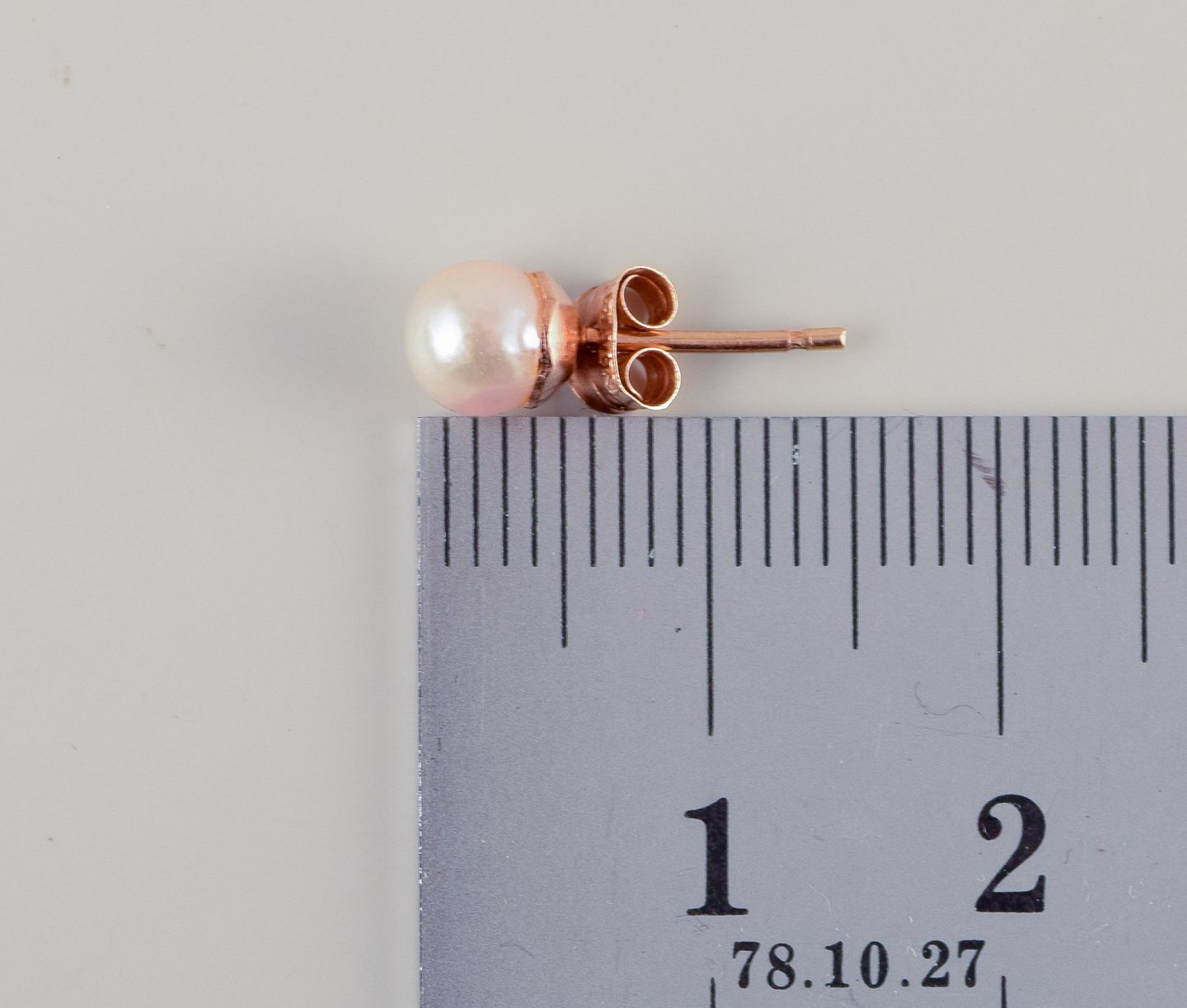 Swedish goldsmith. A pair of classic ear studs in 18 karat gold adorned with cultured pearls.