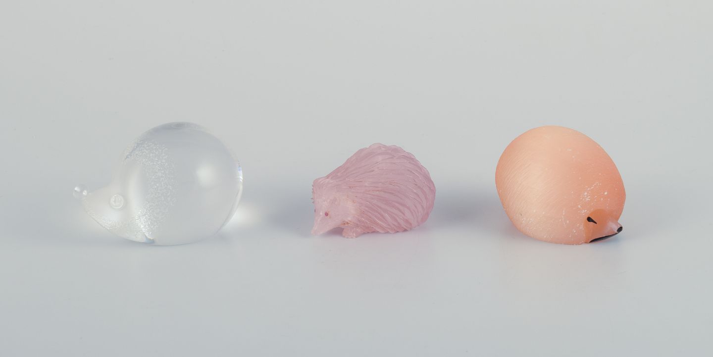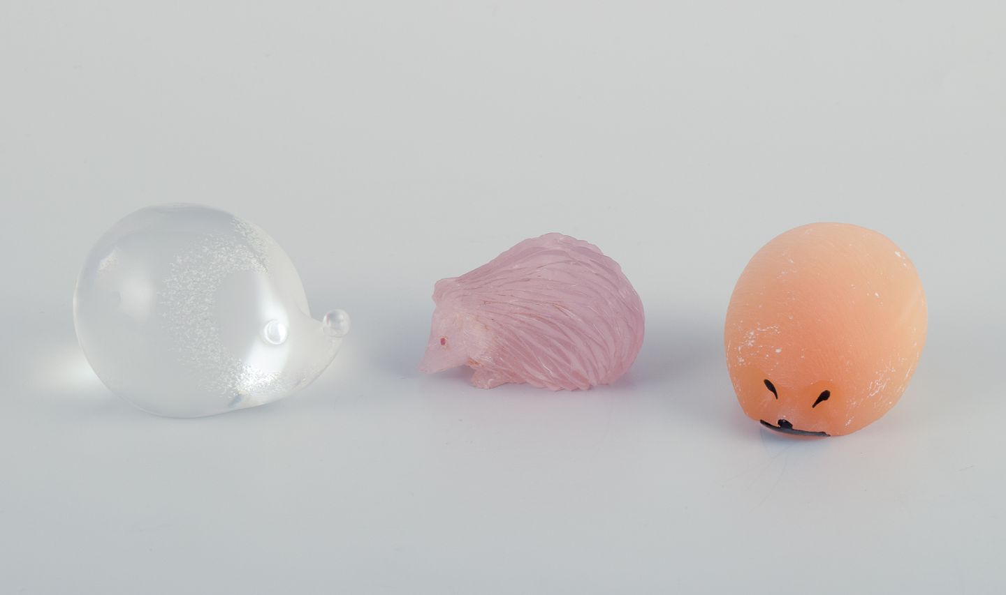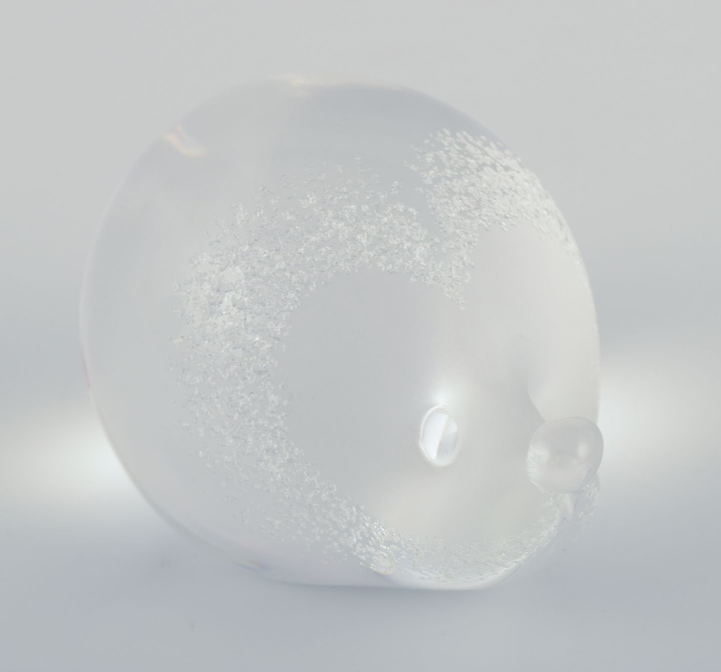 Pindsvin i klart glas: L 7,5 cm. x B 5,0 cm. x H 4,5 cm.