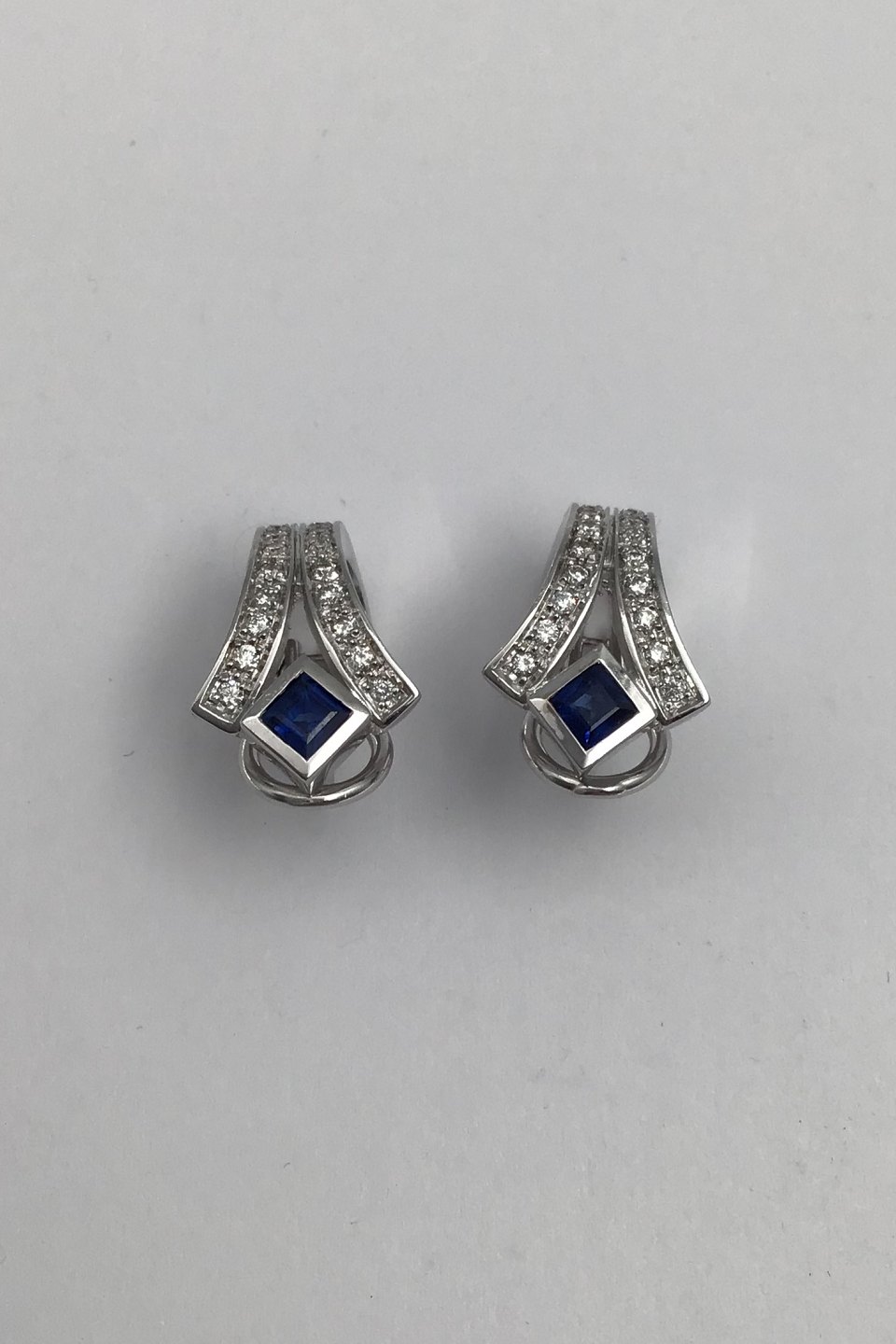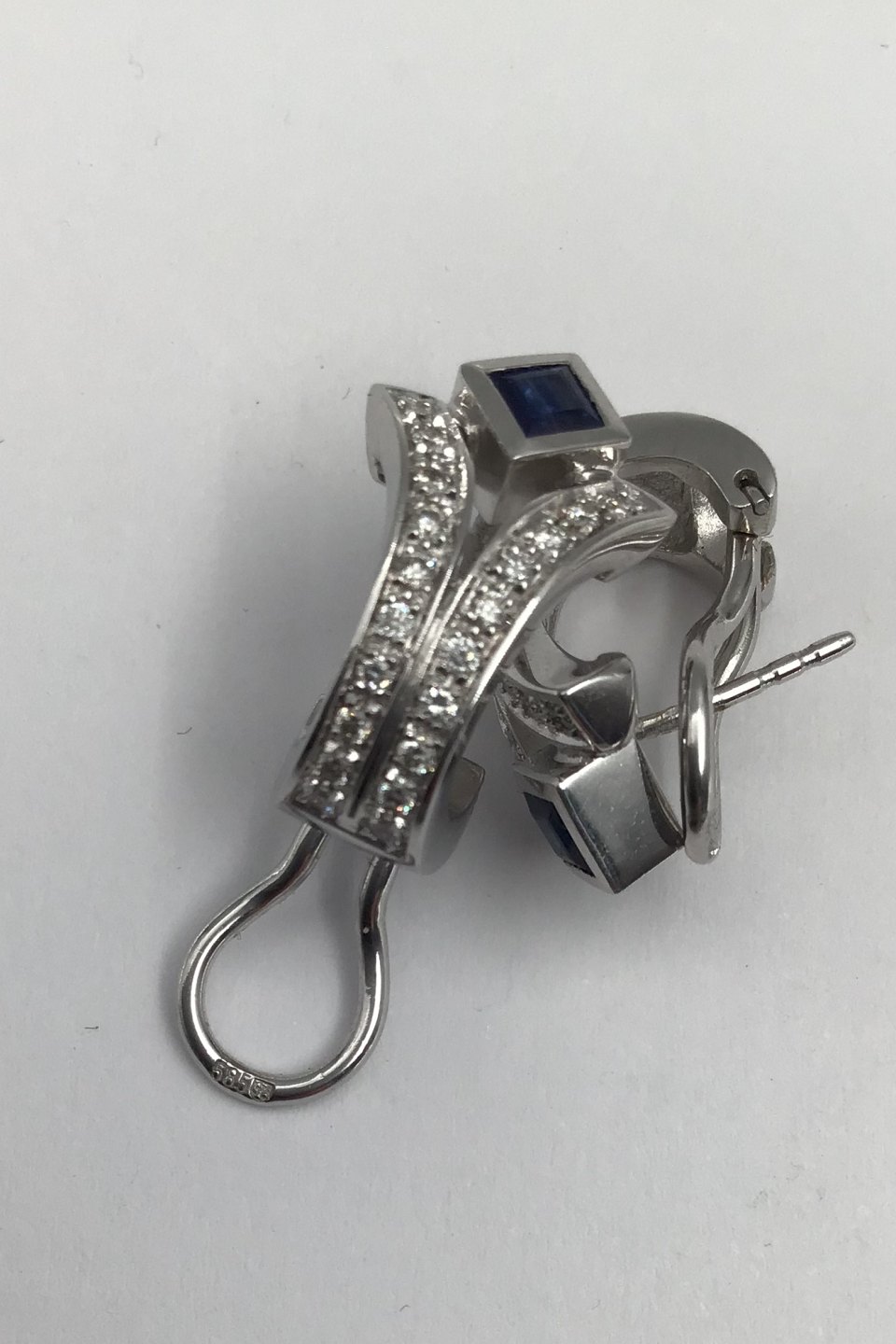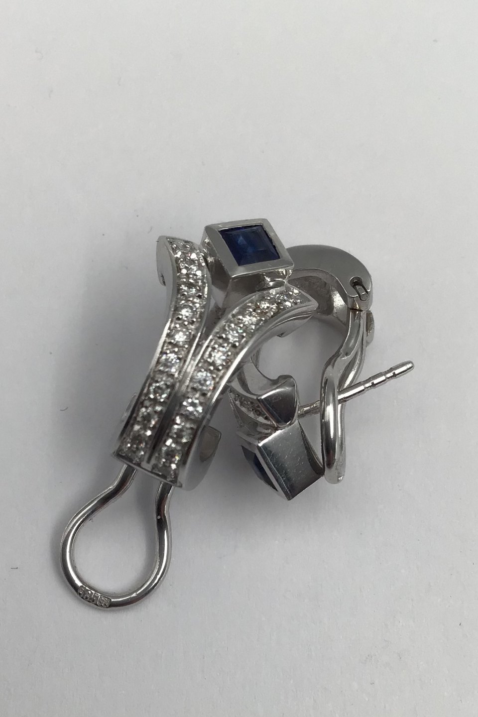 Danske 14 K Hvidguld Ørestikker m Safir & Diamanter