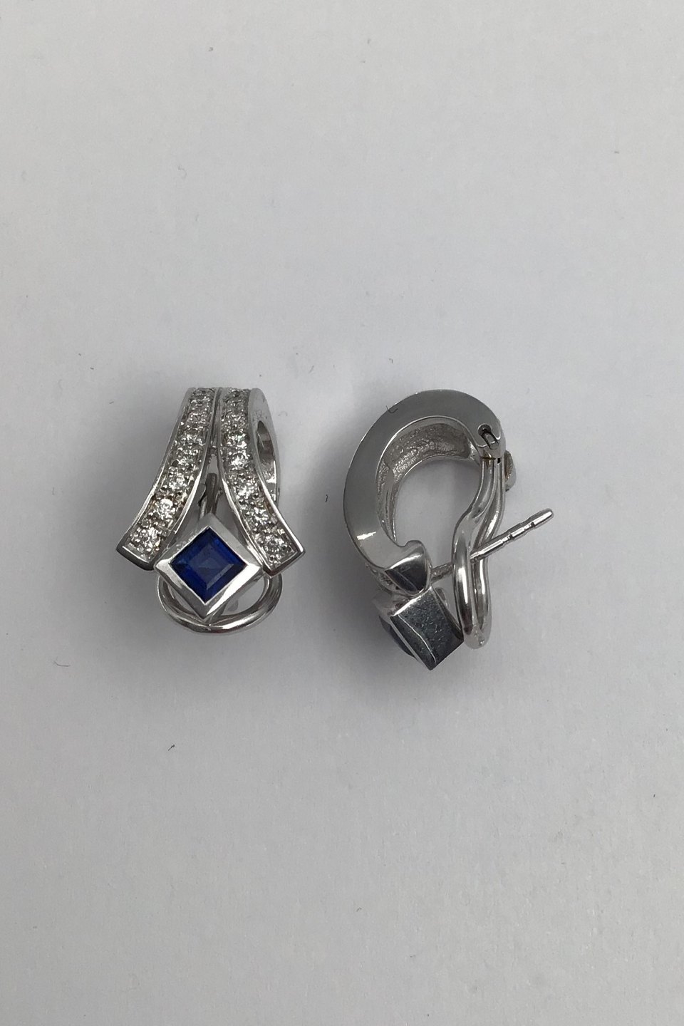Danske 14 K Hvidguld Ørestikker m Safir & Diamanter Måler 2 cm x 1.2 cm (0.78 inch x 0.47 inch) Samlet Vægt 9.3 gr (0.33 oz)
