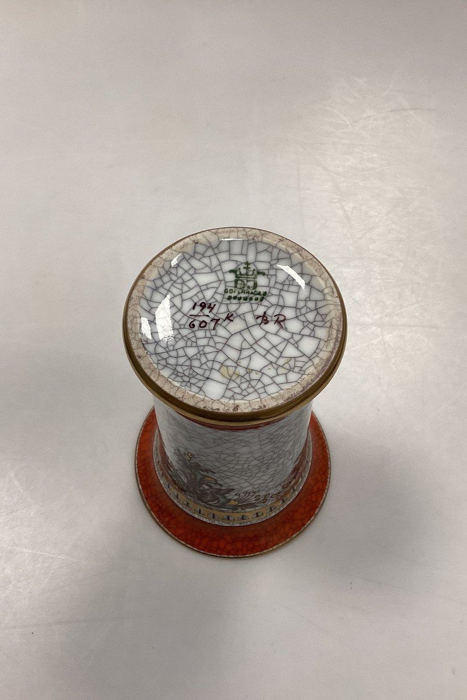 Dahl Jensen Craquelé Vase No. 194/607. Dekoration i sienarød, grøn, hvid og guld.