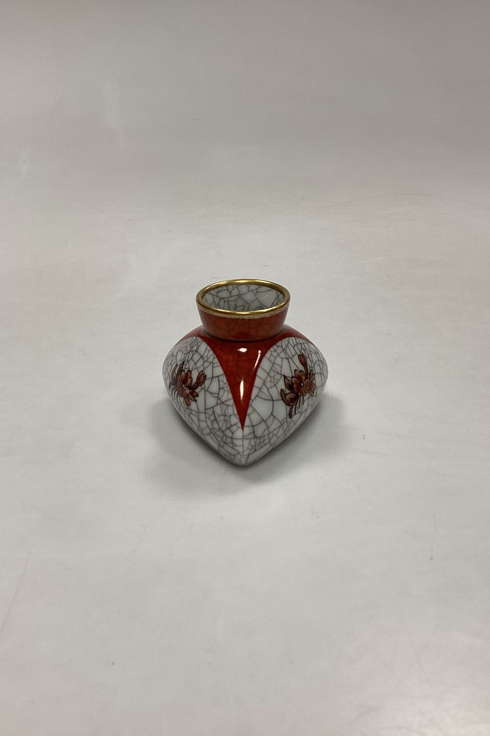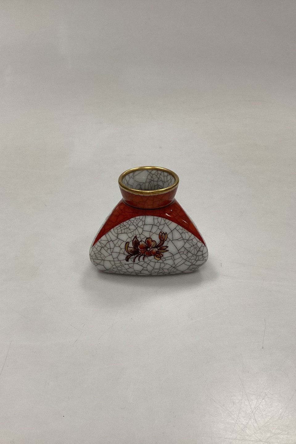 Dahl Jensen Craquelé Vase No.211/638. Dekoration i sienarød, hvid og guld.