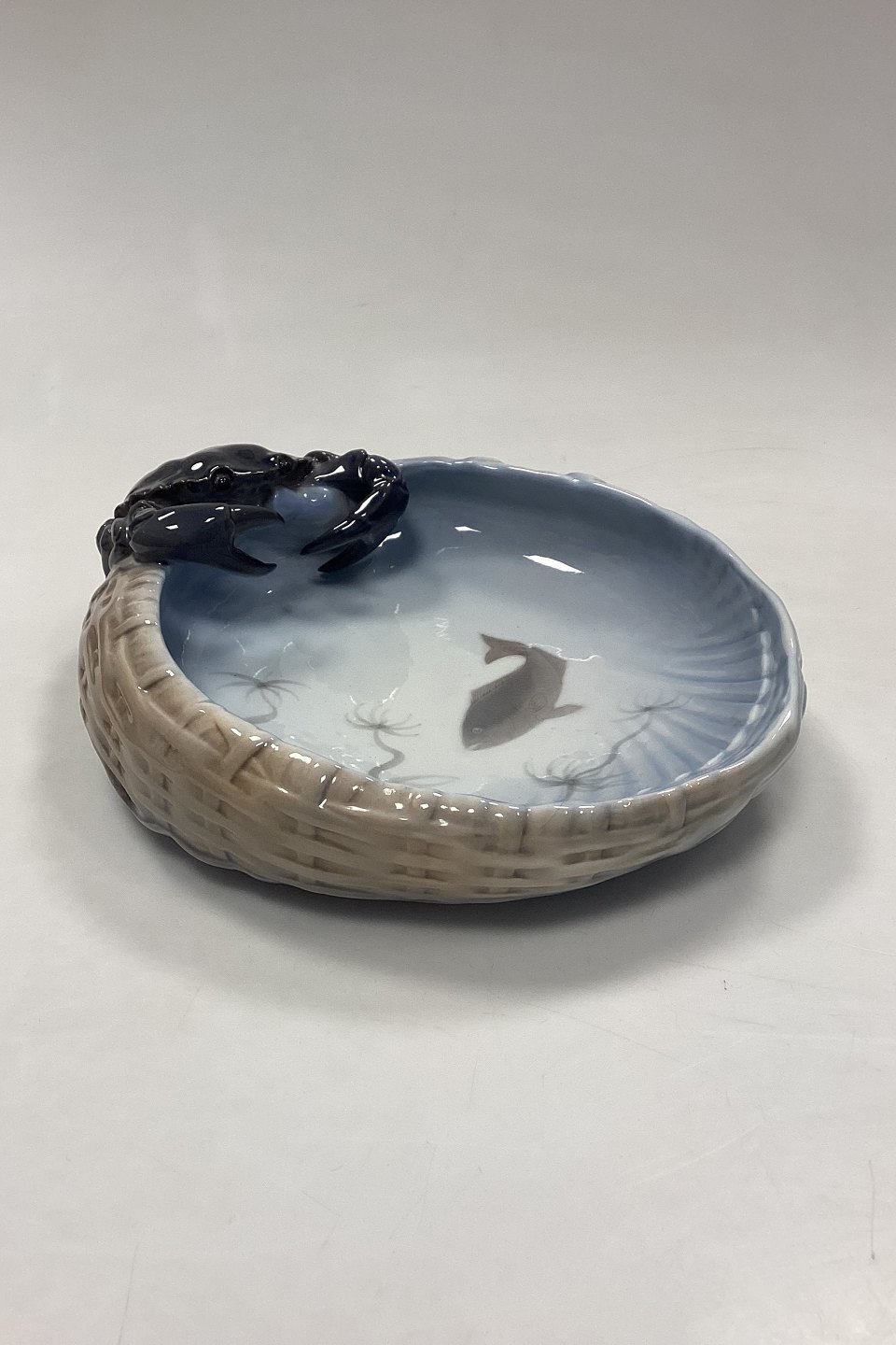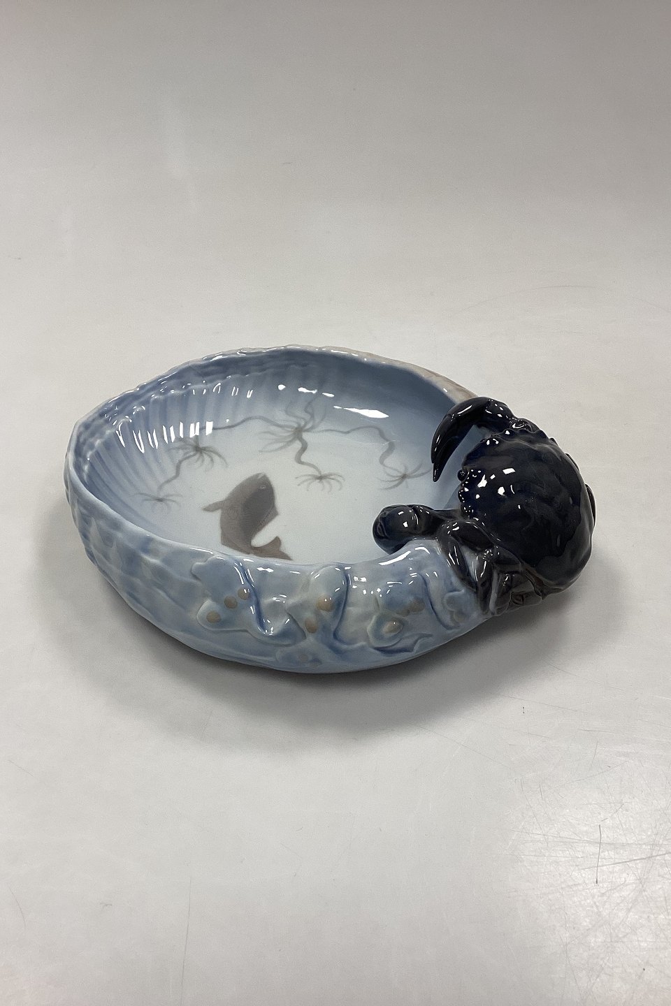 Royal Copenhagen Art Nouveau Skål med Krabbe No. 2465. Måler ca. 25 cm x 20 cm. 1. Sortering