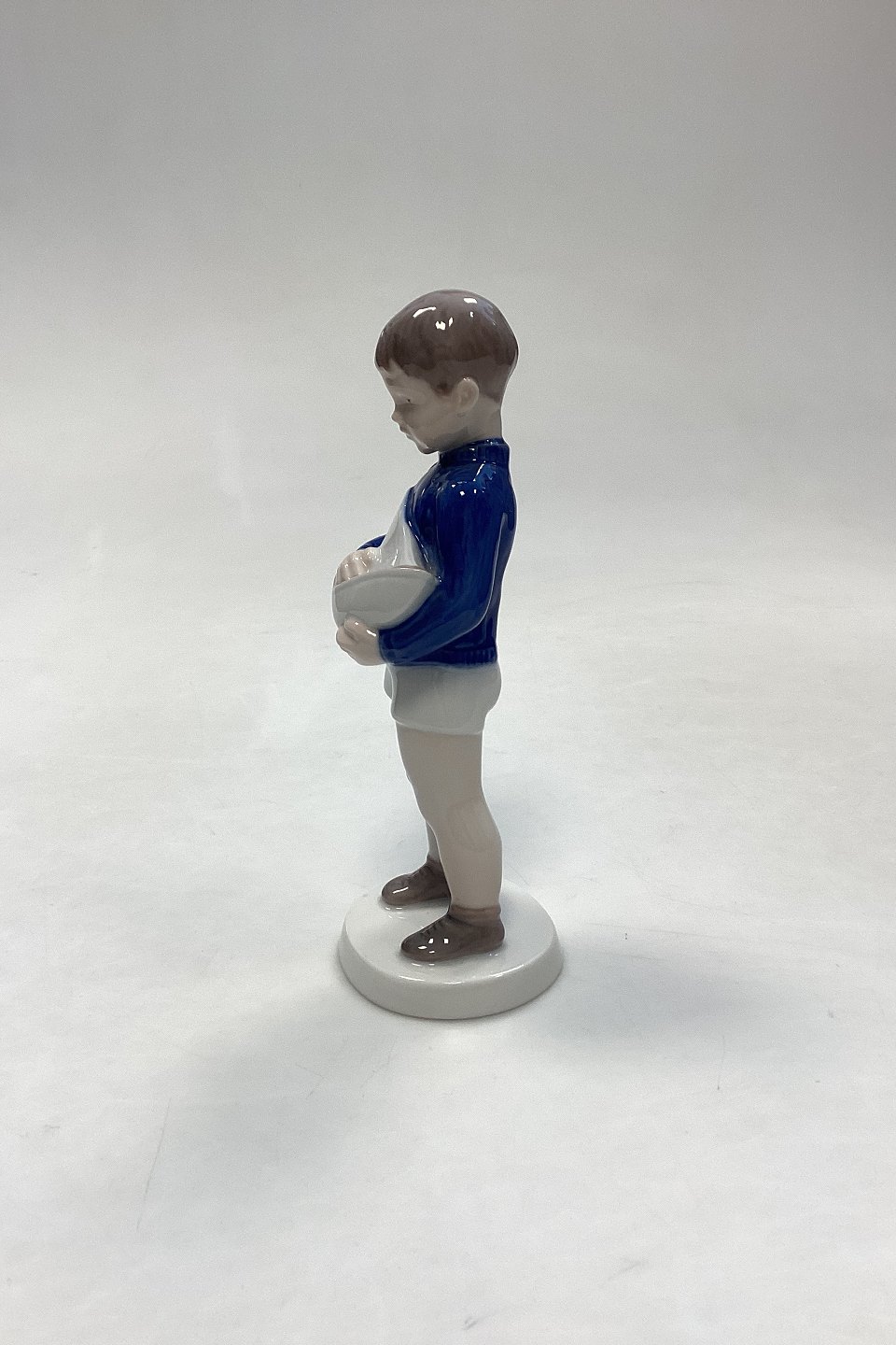 Bing og Grøndahl Figur Dreng med Sejlbåd No. 2380. Designet af Claire Weiss. Måler 18 cm / 7,08 in. 1. Sortering