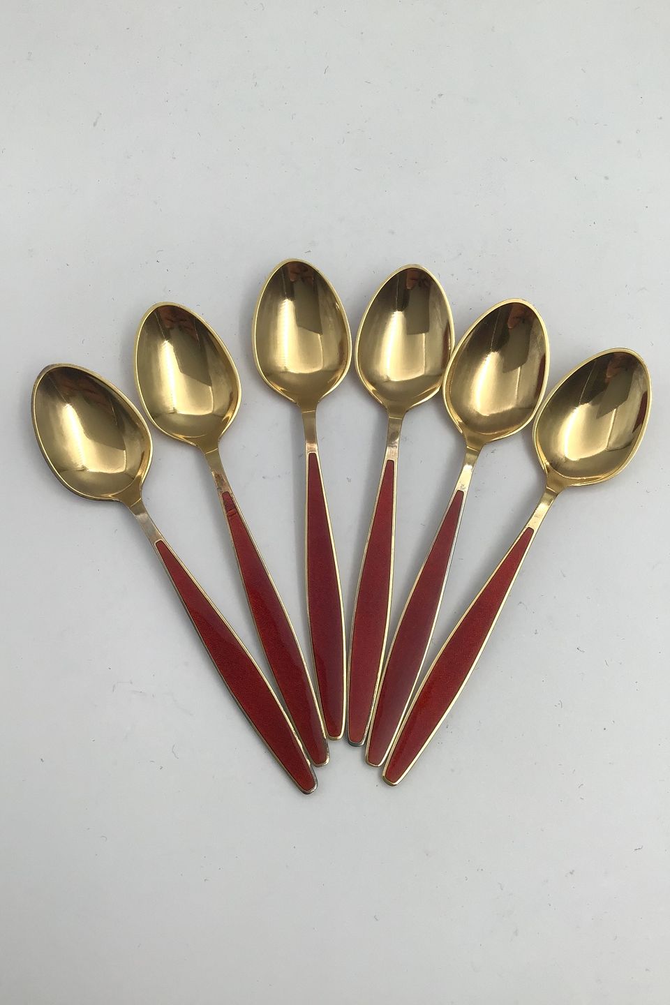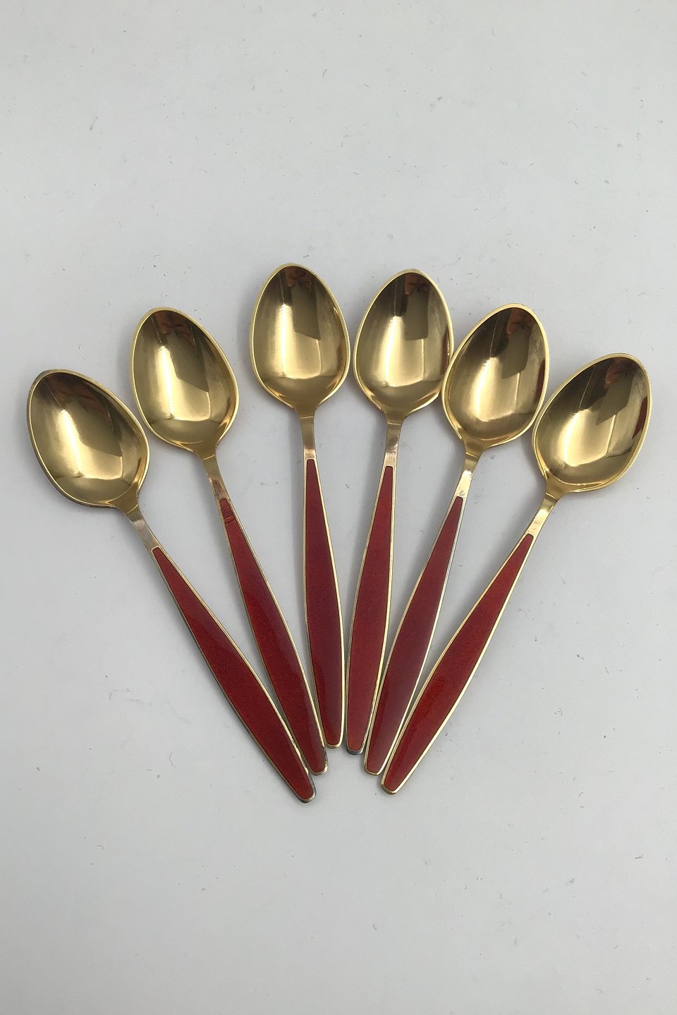 Georg Jensen Sterling Sølv Forgyldt Ornamental Moccaske (Rød emalje)(6)