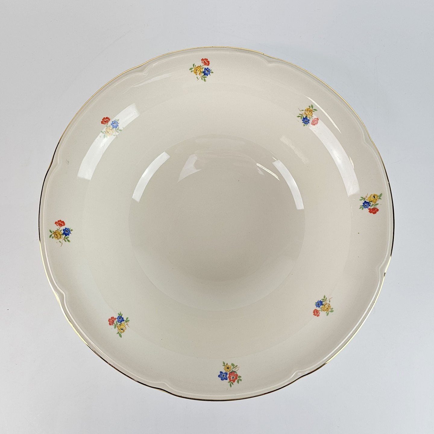 Anna Sofie er hvidt fajance dekoreret med guld kant og små farverige blomster