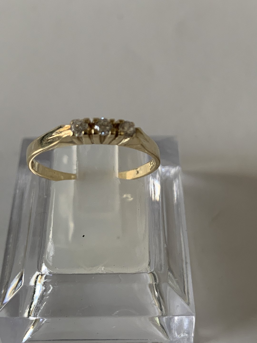 Guldring i 14 karat, stemplet 585, med. 3 klare sten.