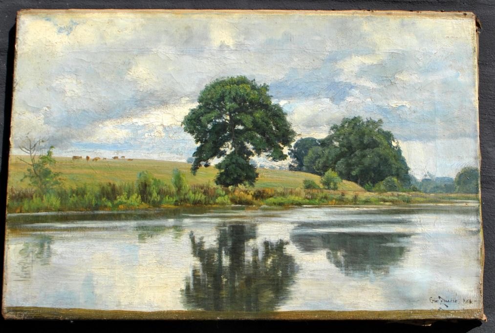 Zacho, Christian (1843 - 1916) Danmark: Landskab. Olie på lærred. Signeret 1886. 34 x 52 cm.