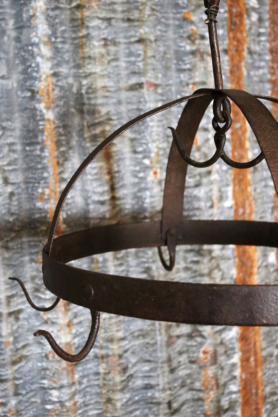 Antik smedejernskrog dekorativ i landkøkkenet til at hænge køkkengrej på...