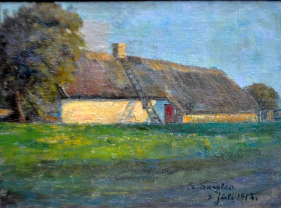 Larsen-Særsløv, Frederik (1870 - 1942) Denmark. A farm in the sunset.