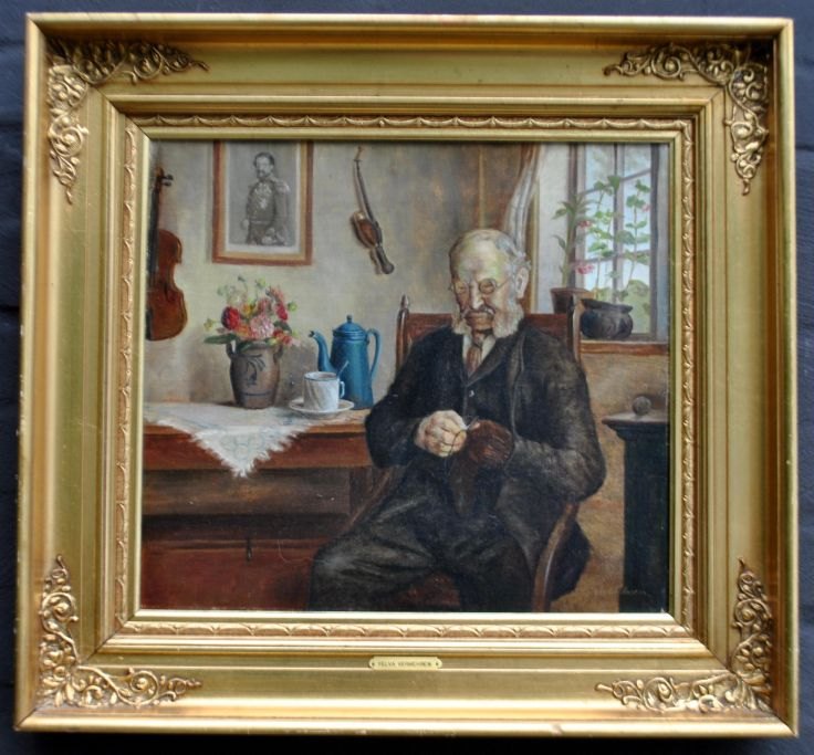 Vermehren, Yelva (1878 - 1980) Danmark: Herreportræt. Olie på lærred. Signeret Y Vermehren. 35 x 39 cm.