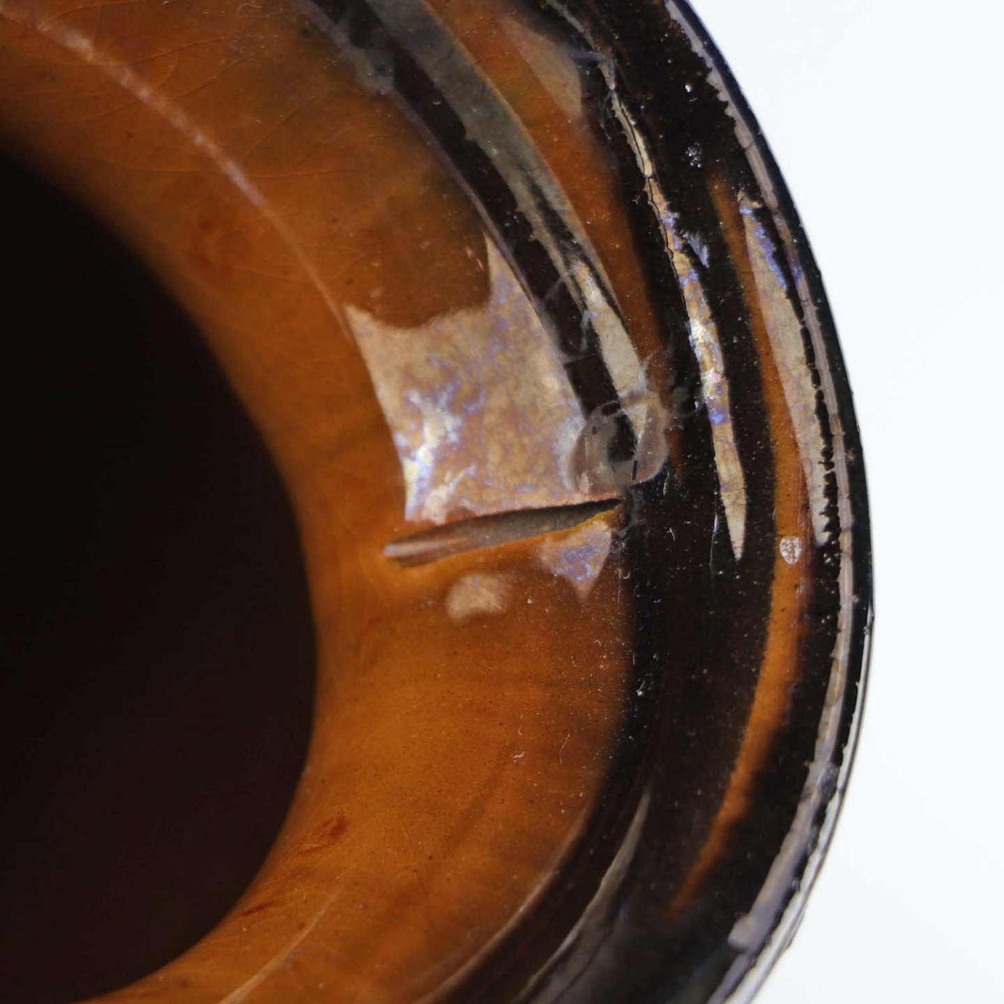 Fremstår med lettere krakeleringer i glasuren og glaseret nøk på indersiden af topkanten