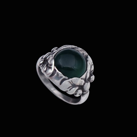 Georg Jensen. Ring i sølv med grøn agat #11B.