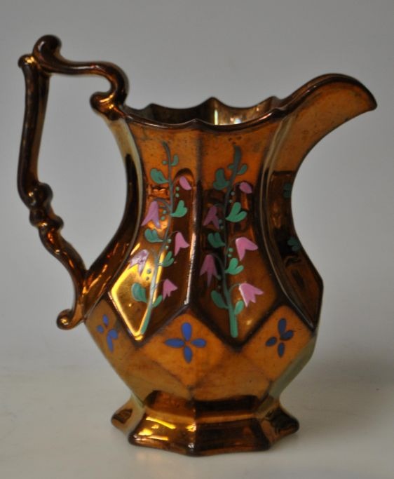 Engelsk lustra kande, 19. årh. 7 kantet. Med håndmalede dekorationer af blomster. H.: 16 cm.