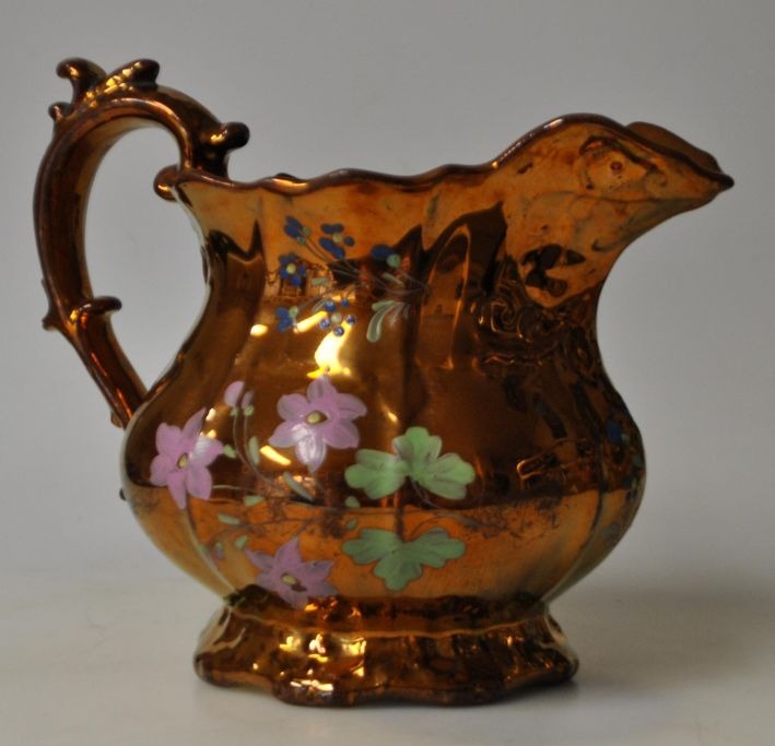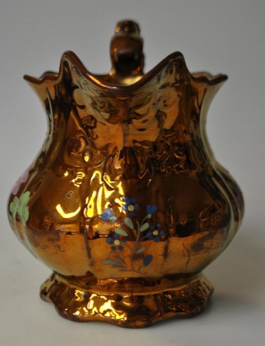 Engelsk lustra kande, 19. årh. Med håndmalede blomsterdekorationer. H: 17 cm. Dia: 21 cm