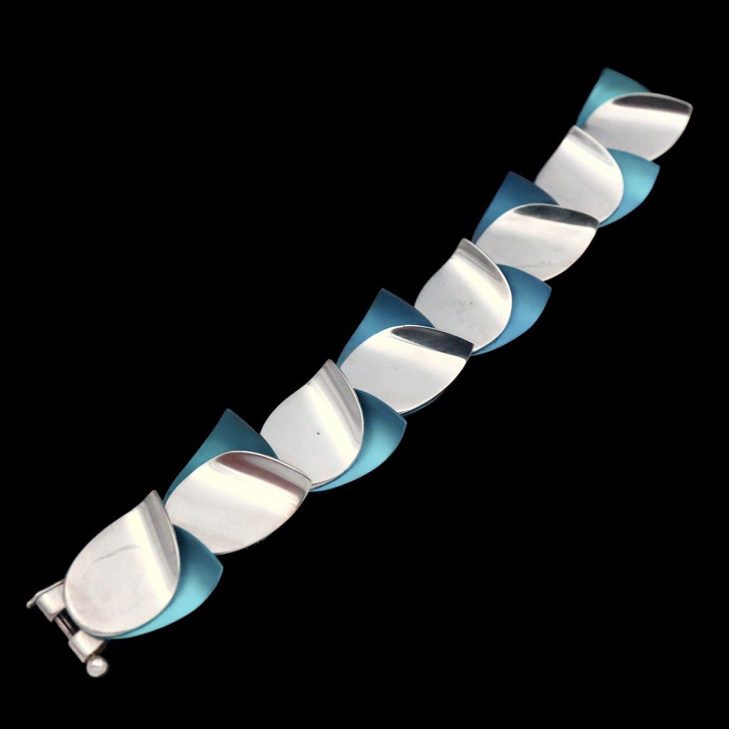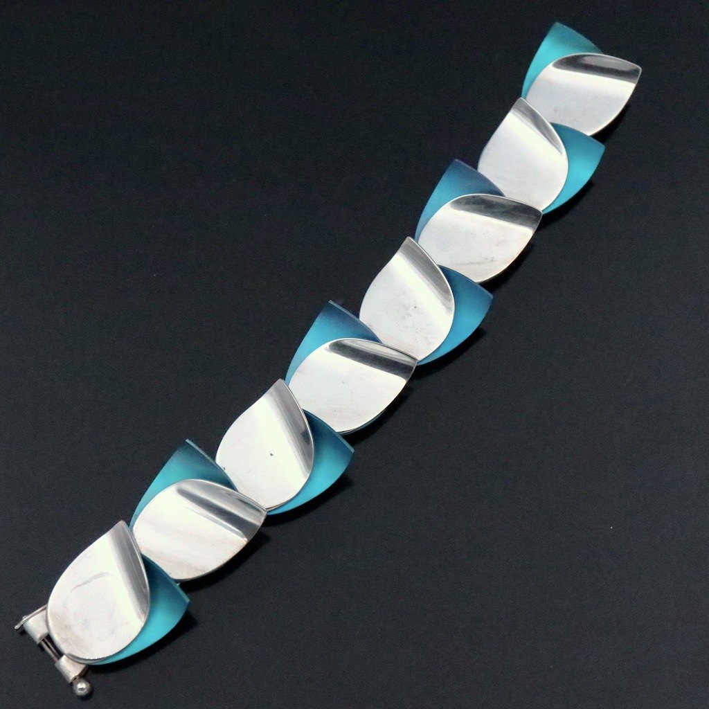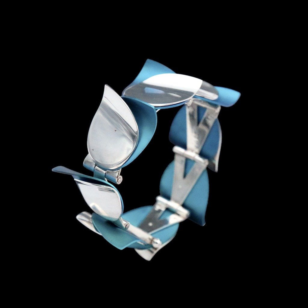 Kirsten Pontoppidan. Armbånd i sterlingsølv med farveoxideret titanium.