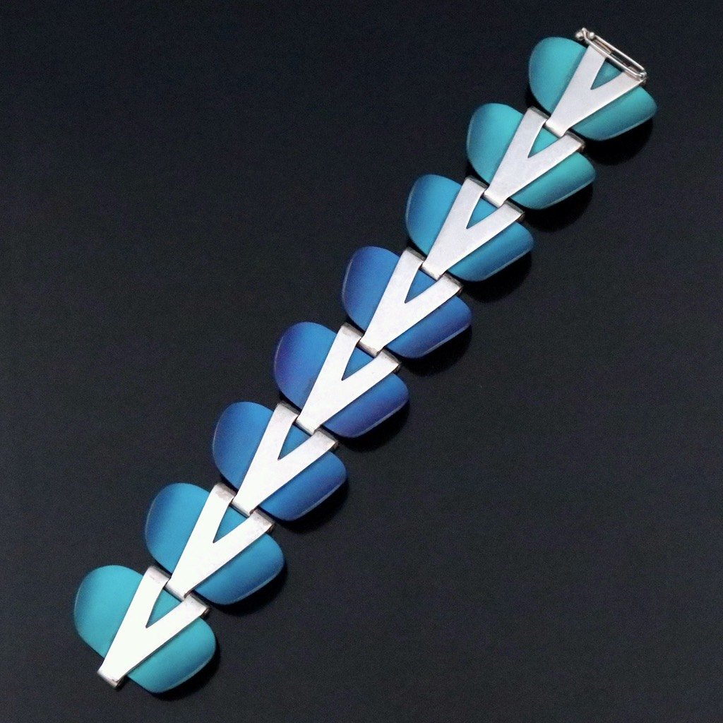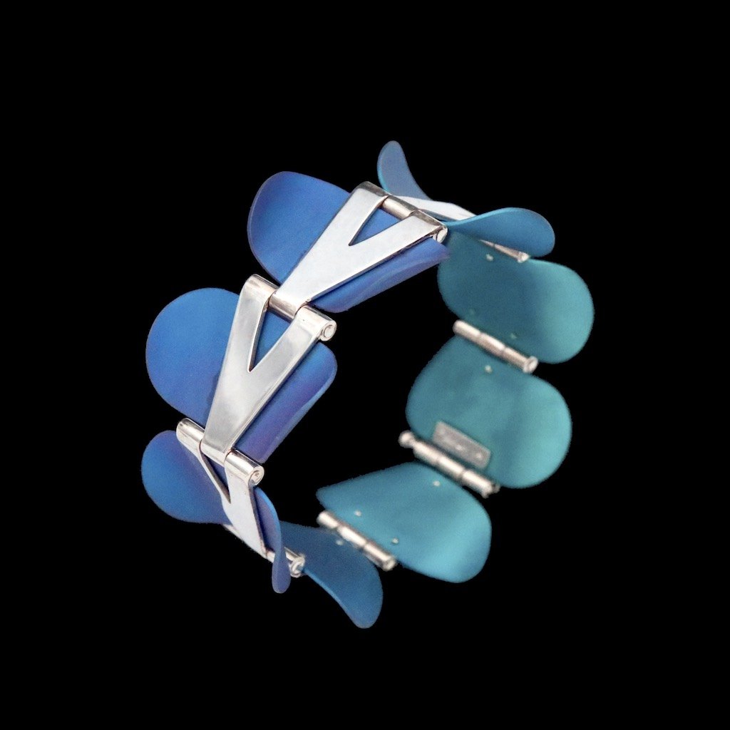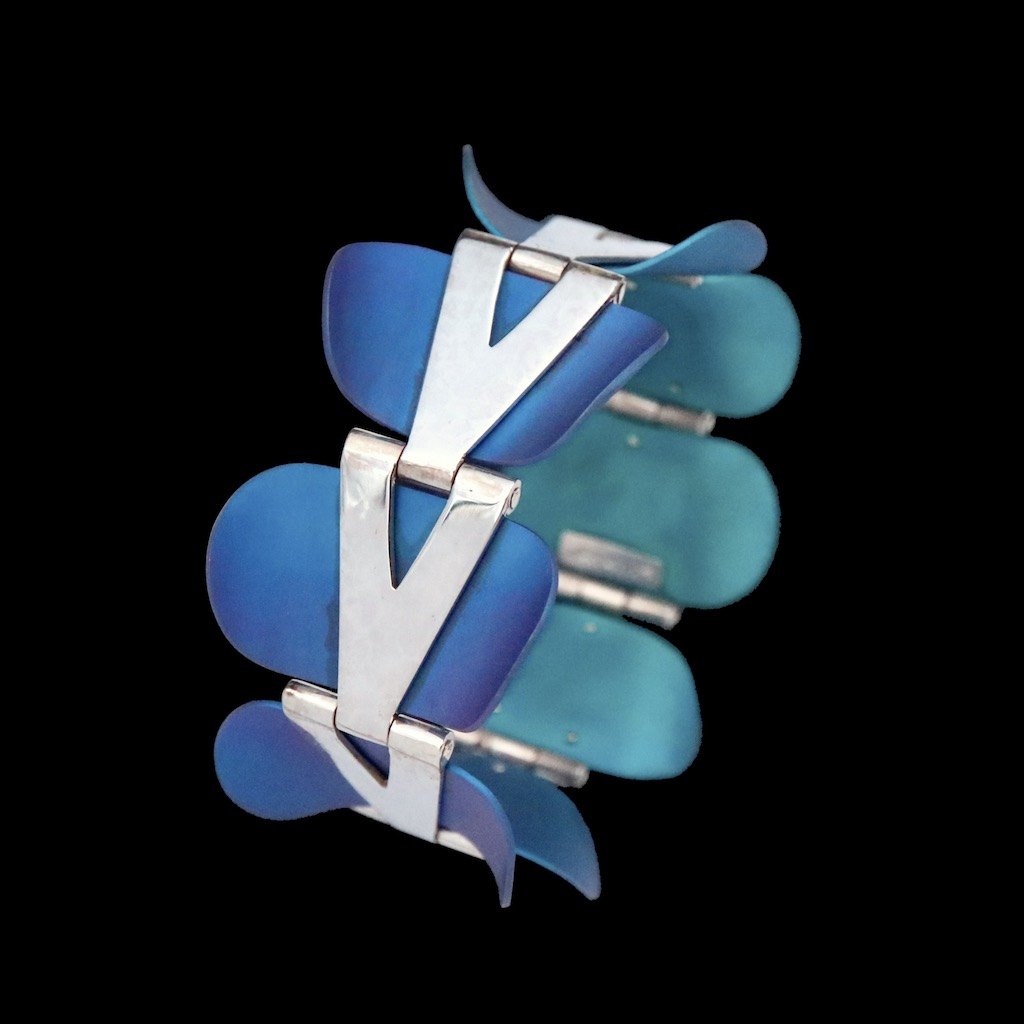 Kirsten Pontoppidan. Armbånd i sterlingsølv med farveoxideret titanium.