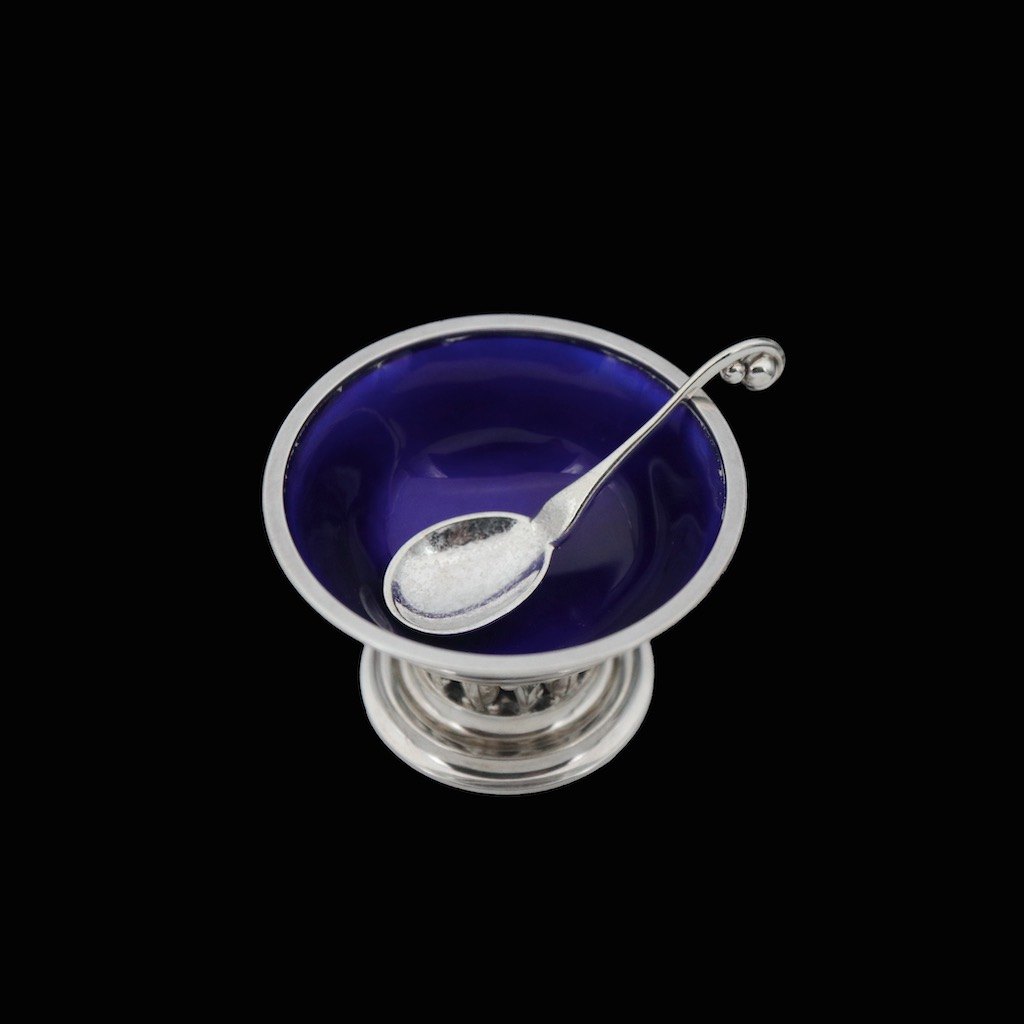 Georg Jensen. Sterling Silver Salt Cellar #180 and Spoon #110.