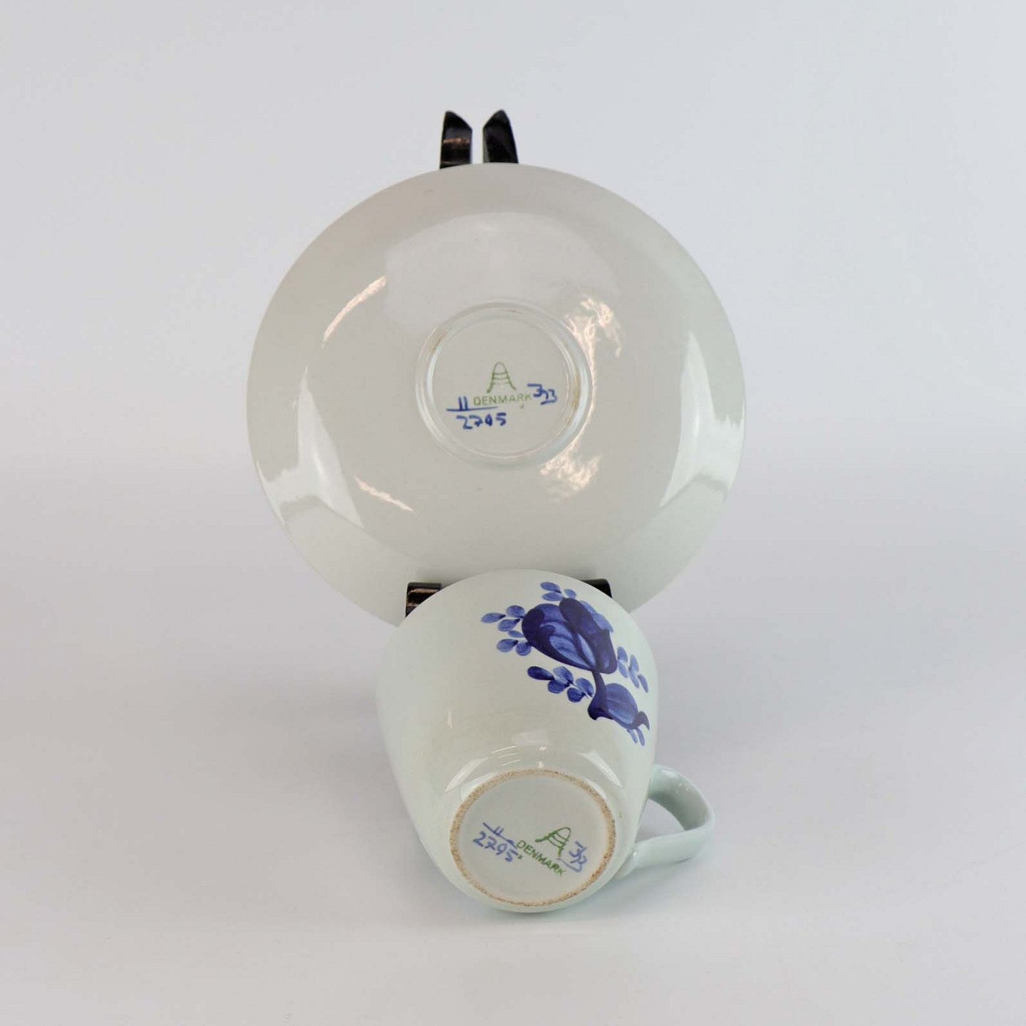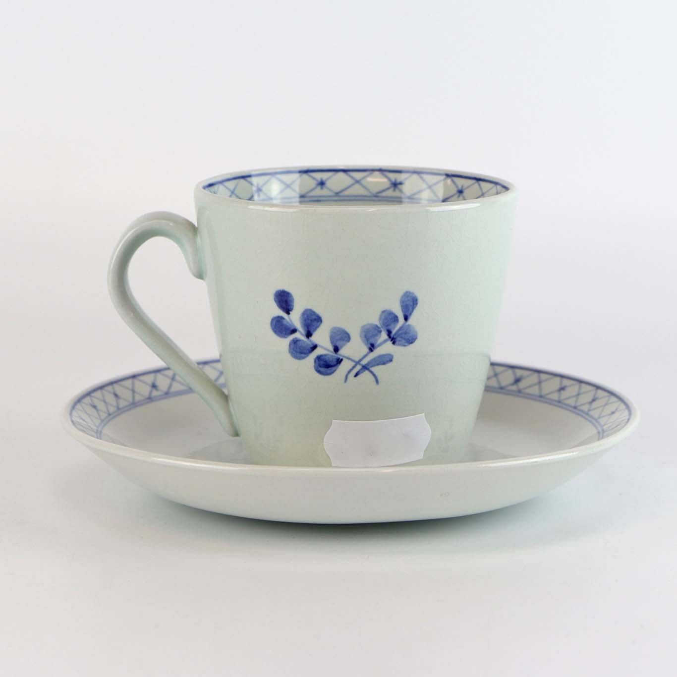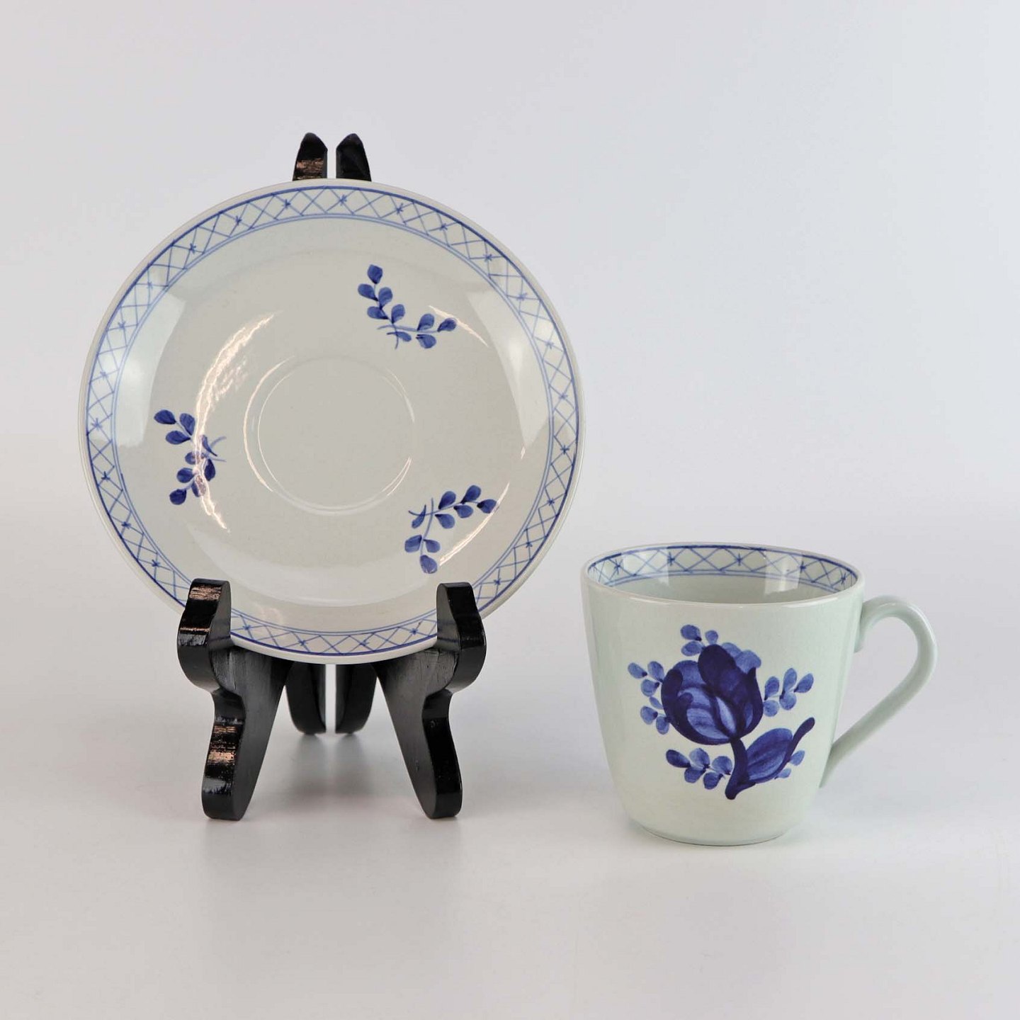 Kaffekop med underkop i fajance fra stellet Blå Tranquebar nr. 11/2795