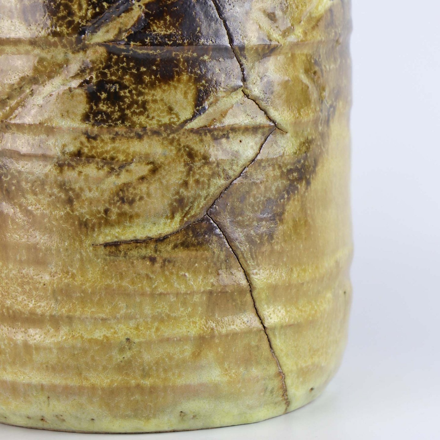 Vase i mat glaseret struktureret keramik med abstrakt motiv