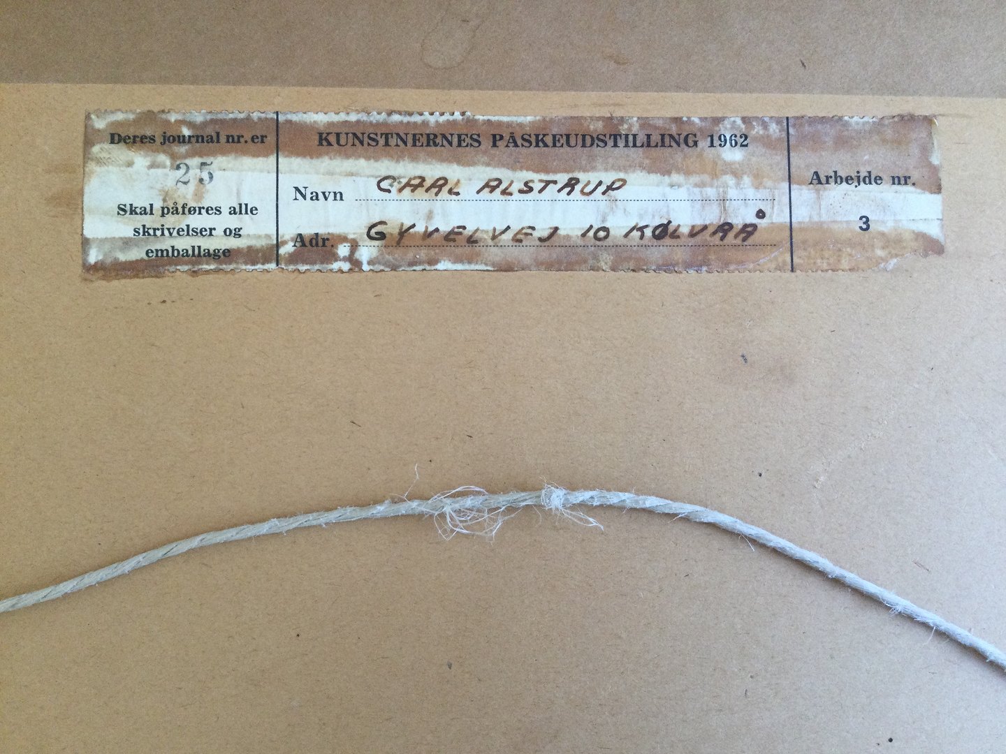 Bagpå plade udstillingsmærkat fra Kunstnernes Påskeudstilling i 1962 nr. 3.