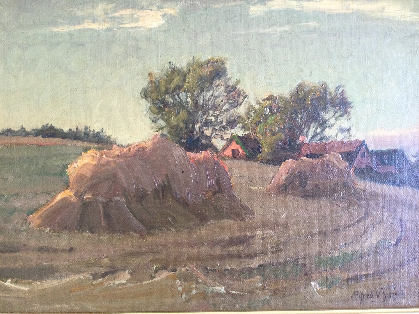 Alfred V. Jensen var uddannet hos Frits E. Jørgensen i Roskilde og var mest kendt som portrætmaler og har bl.a. portrætteret Deres Majestæter Kong Christian X, Dronning Alexandrine og Dronning Ingrid.