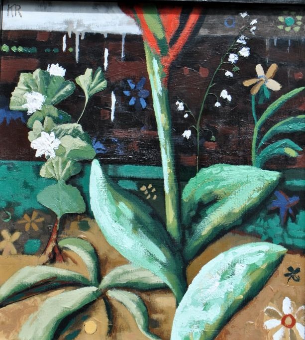 Rasmussen, Kurt (1951 - 2011) Denmark: Naturhistore. Little II - say it with flowers. Acrylic, dried leaves and flowers. Signed. Verso signed.: Kurt Rasmussen 1991. 45 x 41 cm.