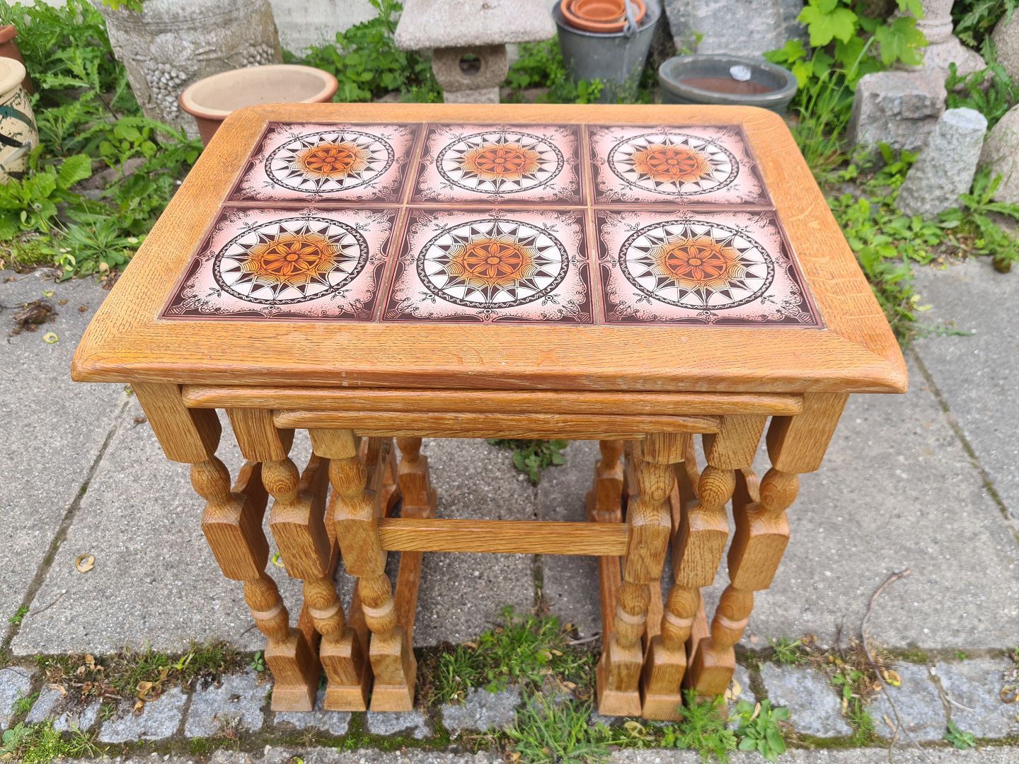 Indskudsborde fra 1970´erne i eg og med kakler. Sættet fremstår pænt og stabilt uden de store brugsspor.