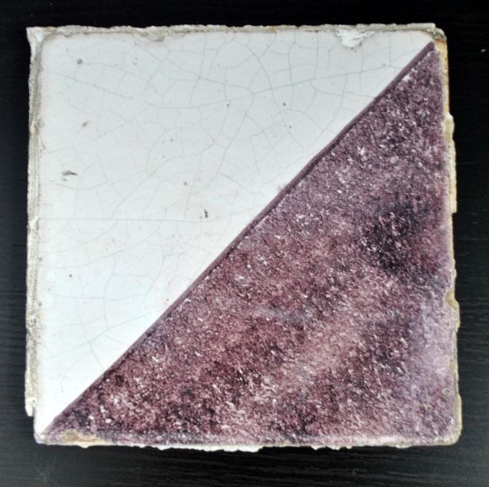 Diagonal opdelt flise, Schlesvig, 19.årh. Tyskland. Mangan farvet. 13 x 13 cm.