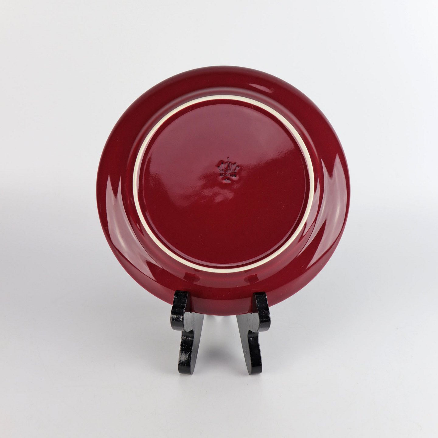 Kagetallerken i porcelæn med glansfuld mørk rød glasur