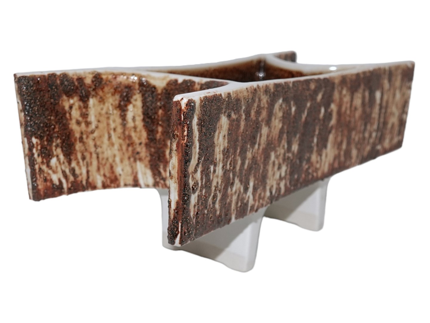 Yamasan Ikebana keramik fra Japan, skulpturel skål på fire fødder fra ca. 1960 til 1970.