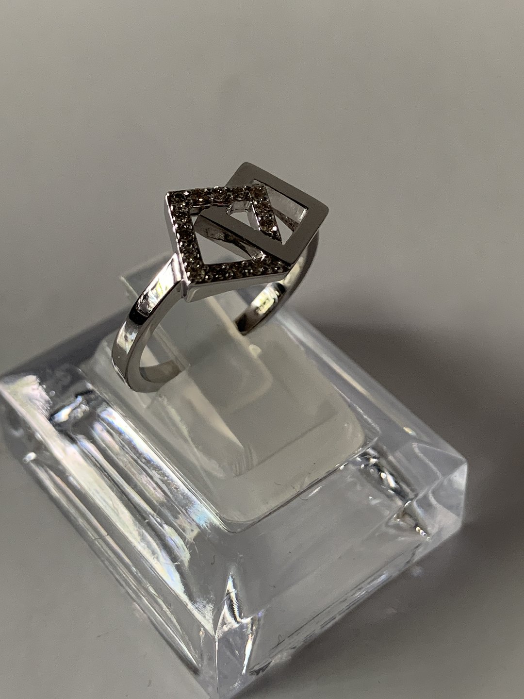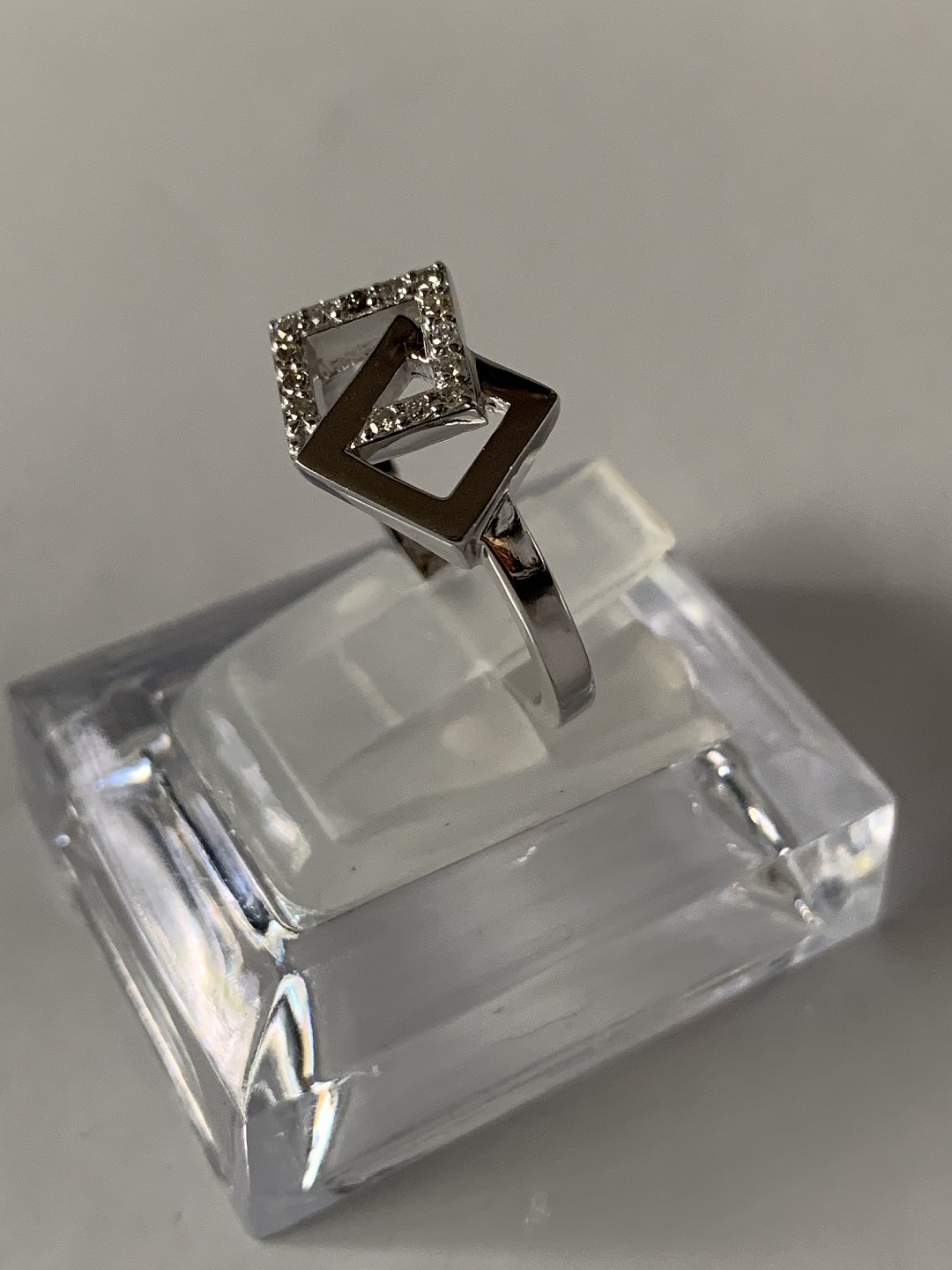 Damering i 14 karat hvidguld, med indlagt brillanter. Størrelse. 56